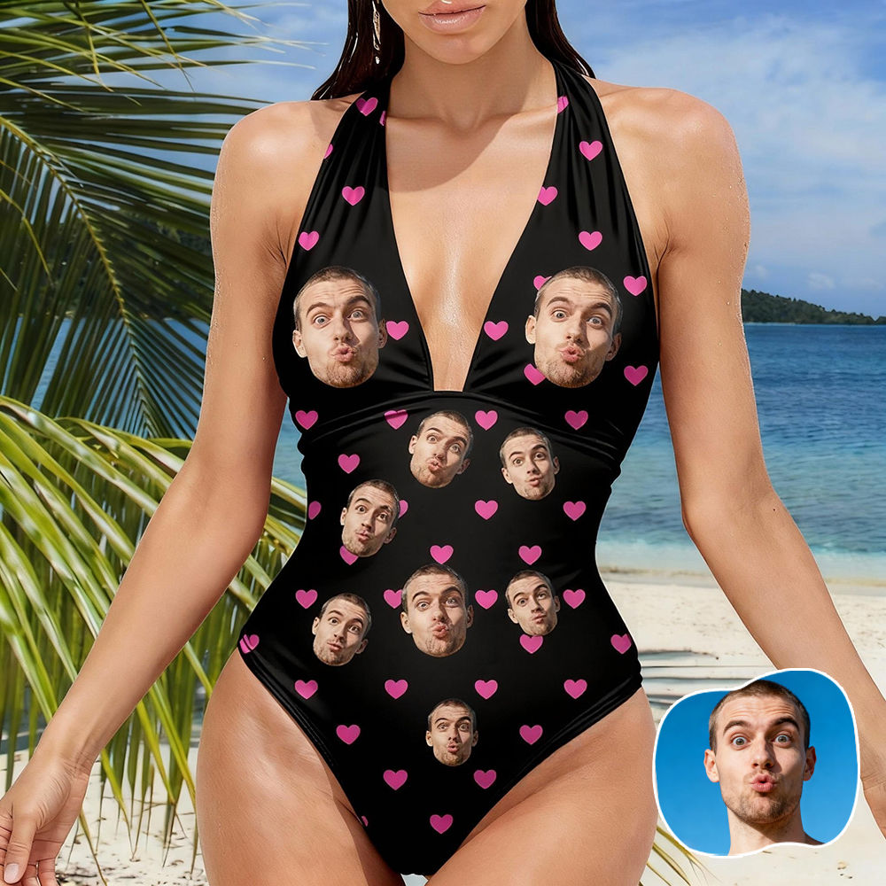Personalized Face Swimsuit Custom Women's Deep V-neck Halter Swimwear Bathing Swimsuit For Women