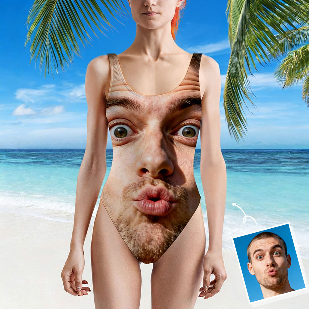 Custom Beach One-piece Bathing Swimsuit Personalized Photo Swimsuit With Face Funny For Women,gift For Wife