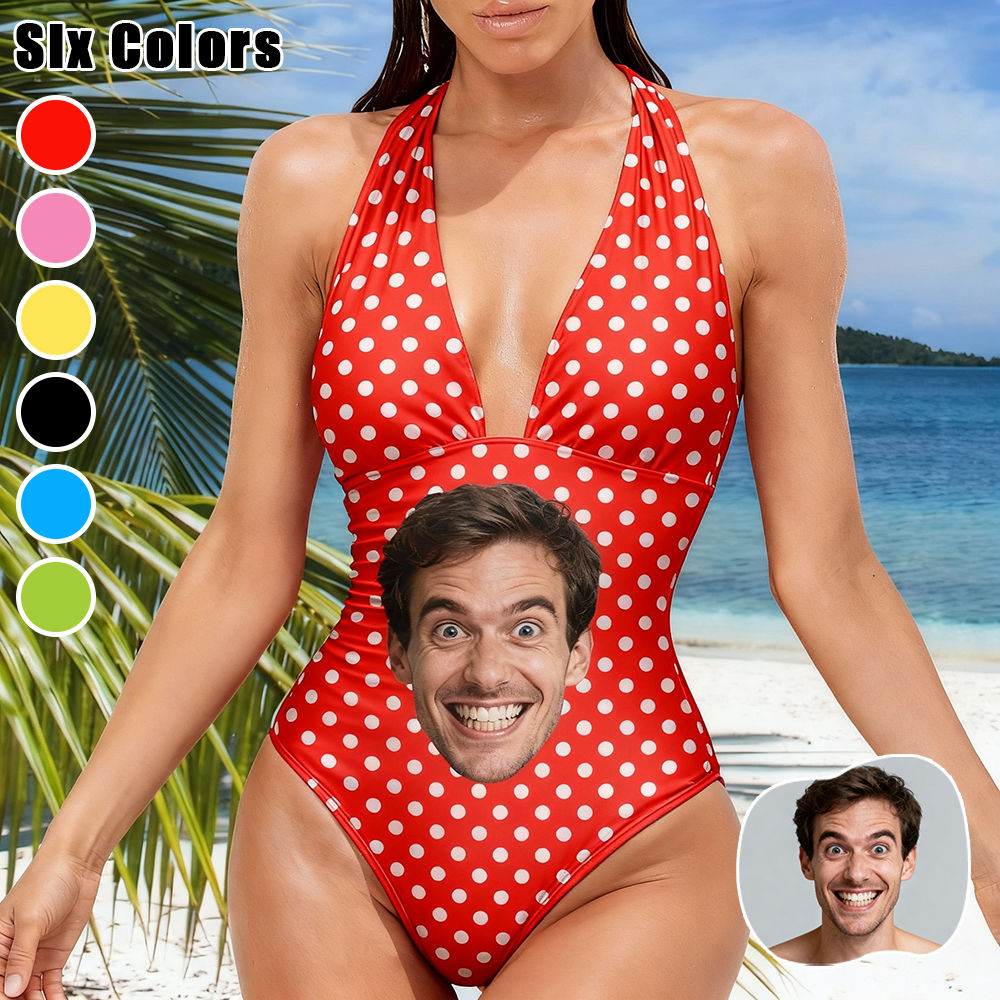 Personalized Face Swimsuit Custom Women's Deep V-neck Halter Swimwear Bathing Poka Dolt Vintage Swimsuit For Women