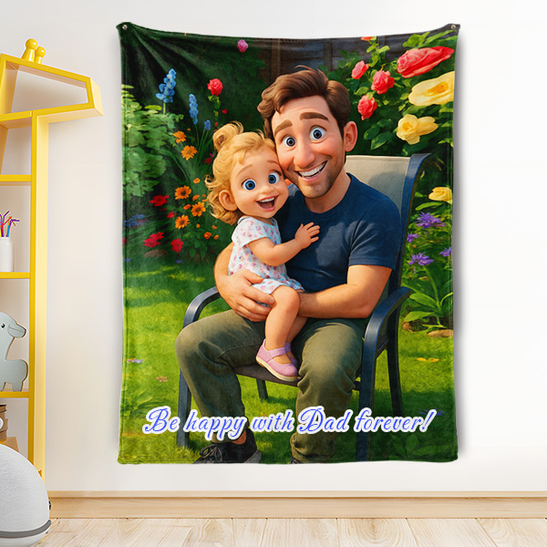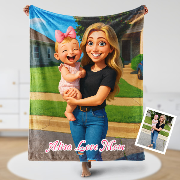 Custom Cartoon Blanket – Personalized 3d Effective Wool Felt Style Blanket With Photo & Name | Unique Gift For Couple & Lovers & Family