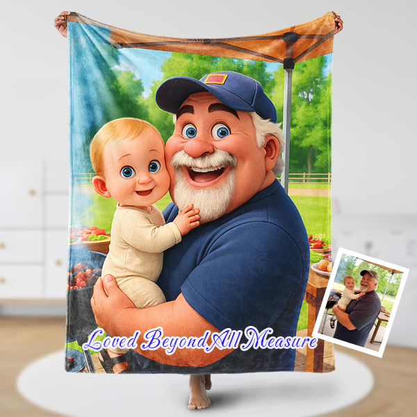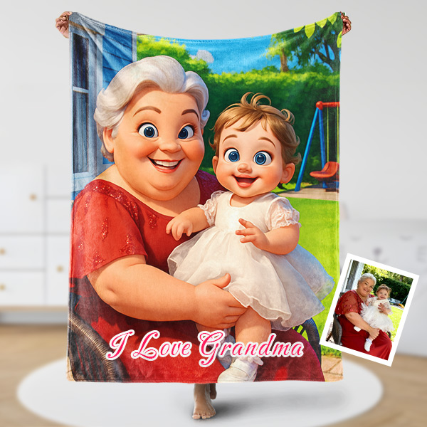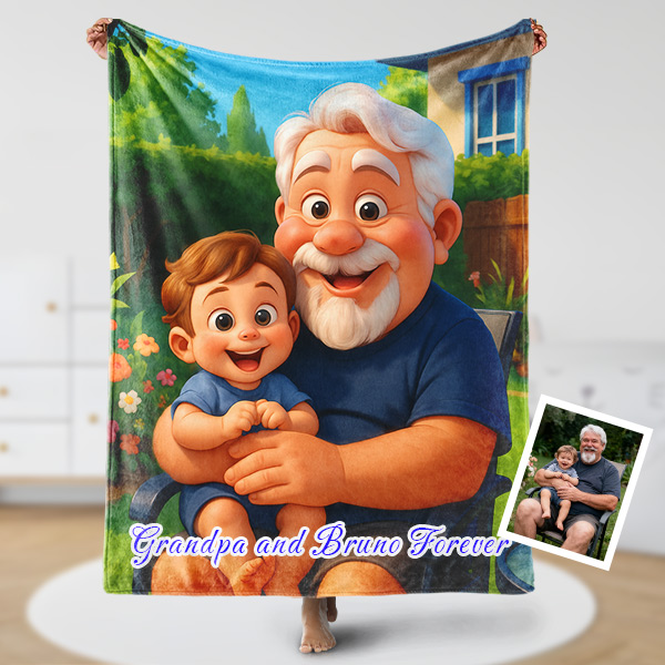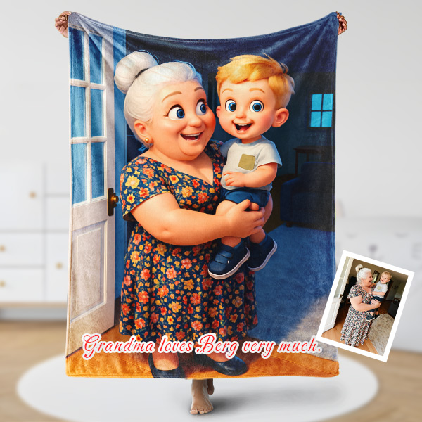 Custom Cartoon Blanket – Personalized 3d Effective Blocks Style Blanket With Photos & Name | Unique Gift For Family For Christmas For Nana For Kids