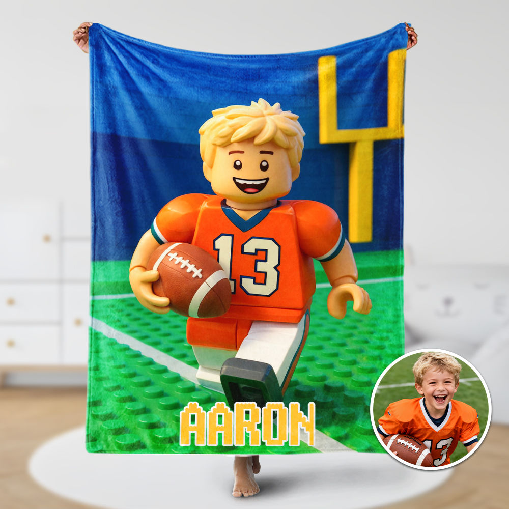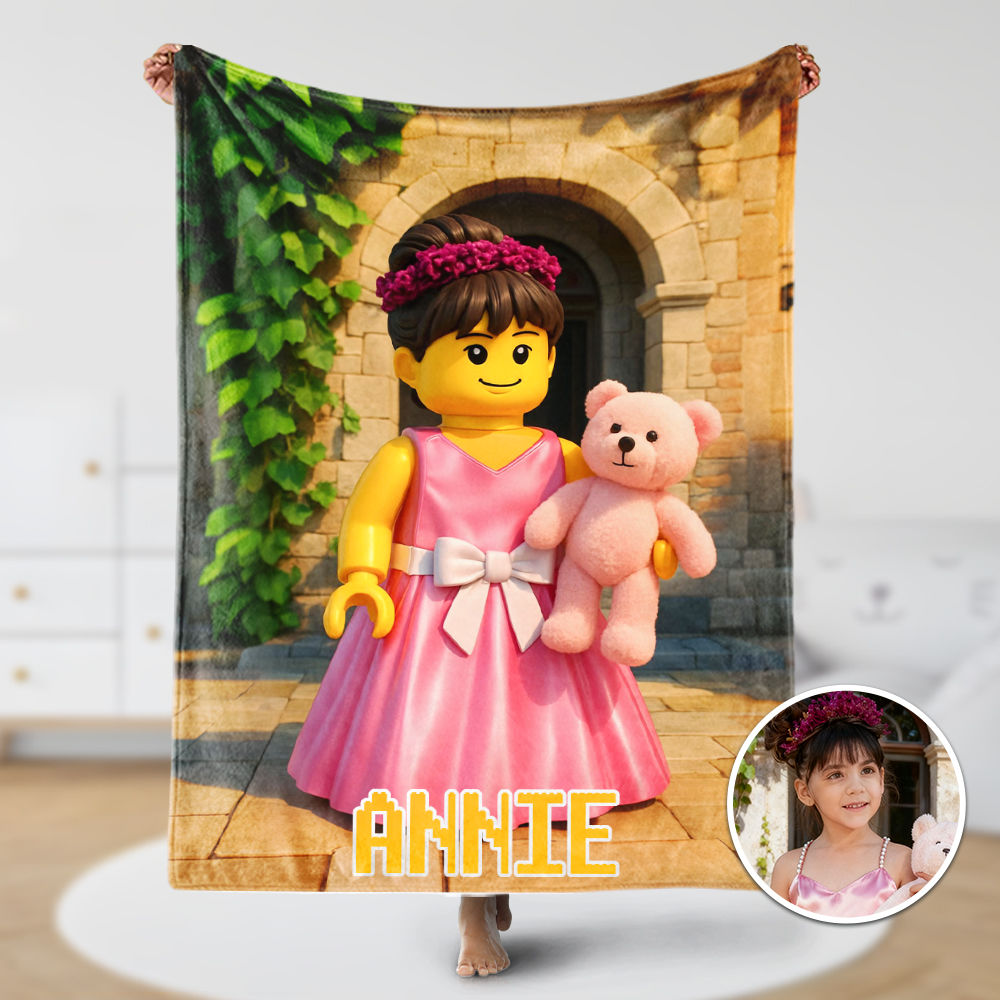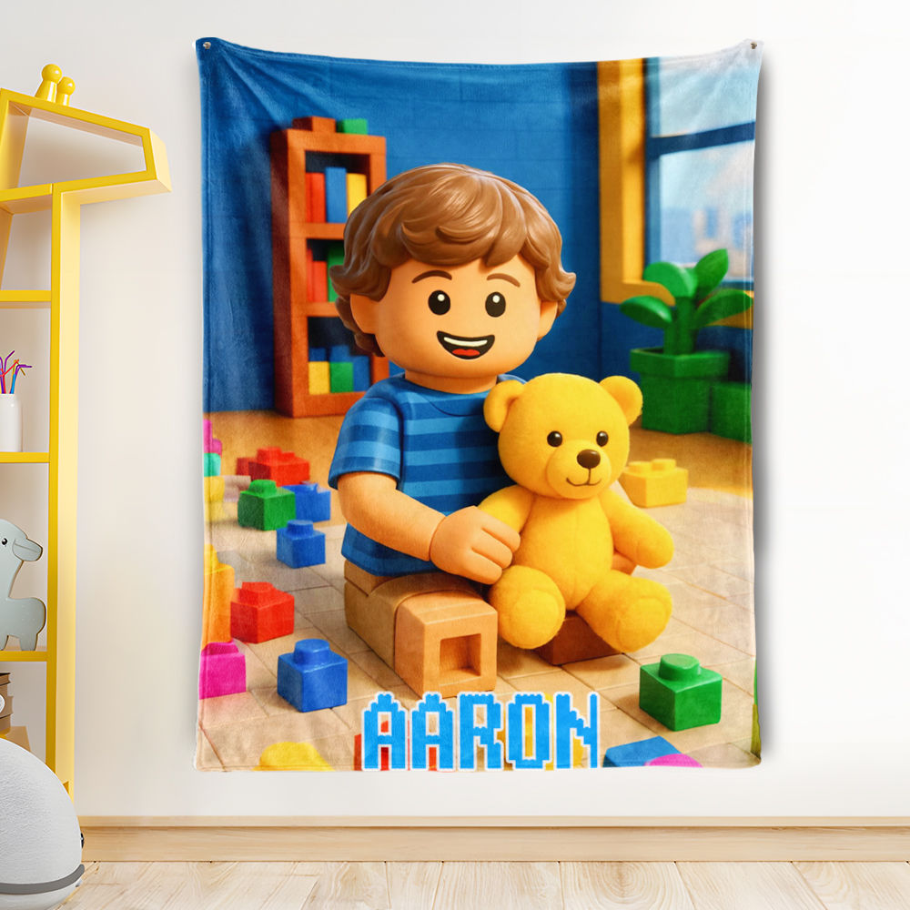 Custom Cartoon Blanket – Personalized 3d Effective Block Style Blanket With Photos & Name | Unique Gifts For Family For Christmas For Kids