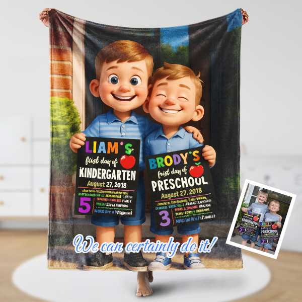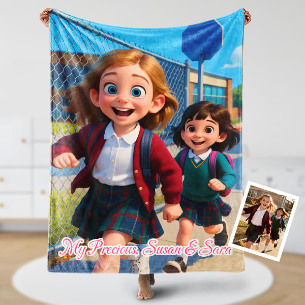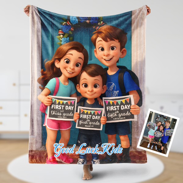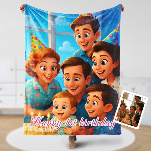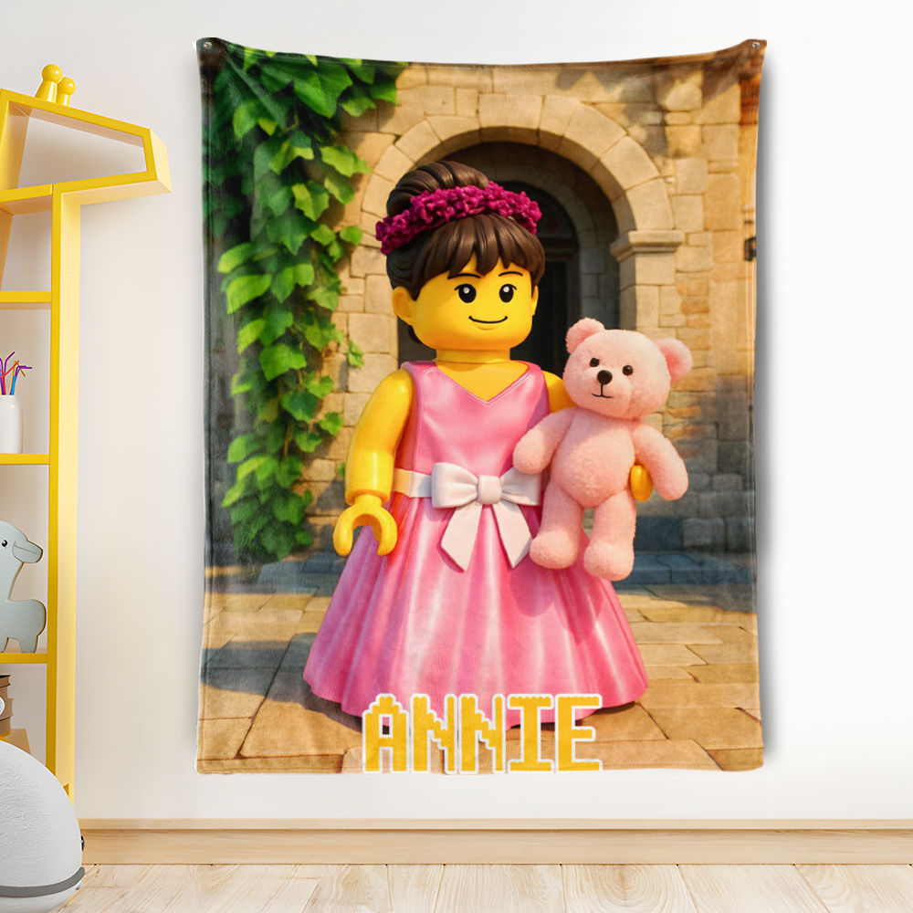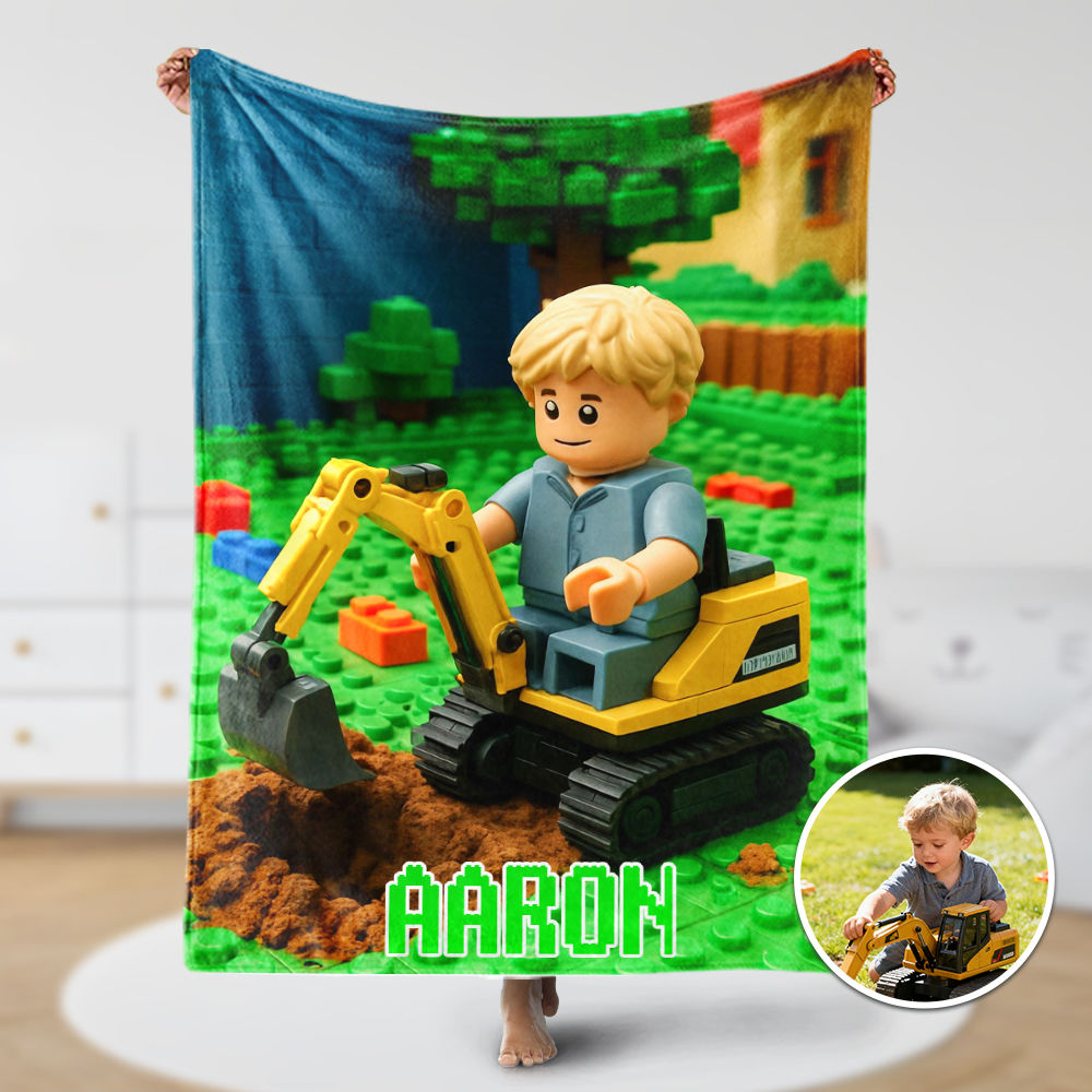 Custom Cartoon Blanket – Personalized 3d Effective Block Style Blanket With Photos & Name | Unique Gifts For Family For Christmas For Kids