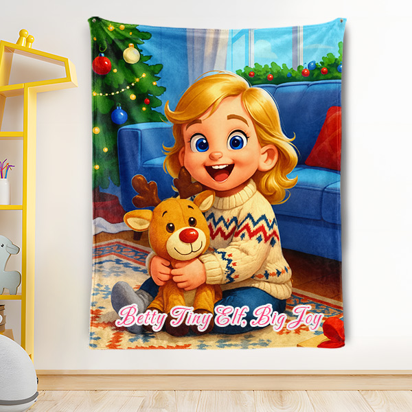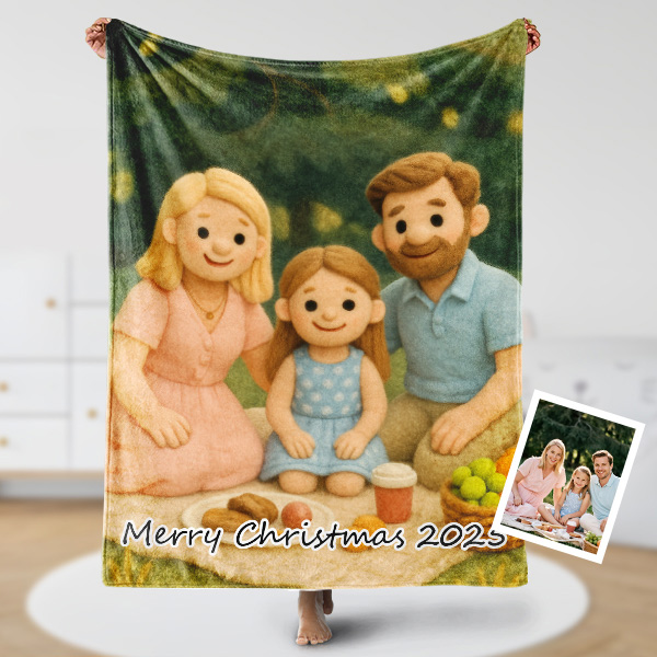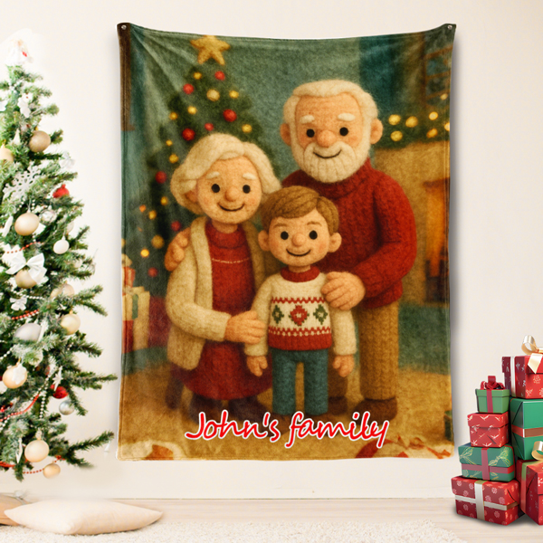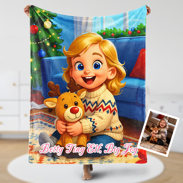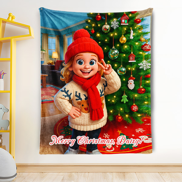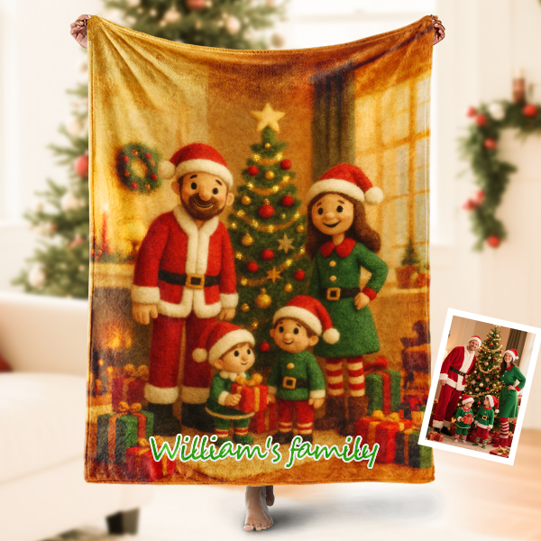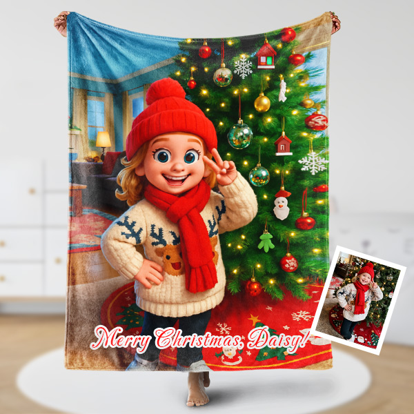 Custom Cartoon Blanket – Personalized 3d Effective Wool Felt Style Blanket With Photo & Name | Unique Gift For Family For Christmas For Kids