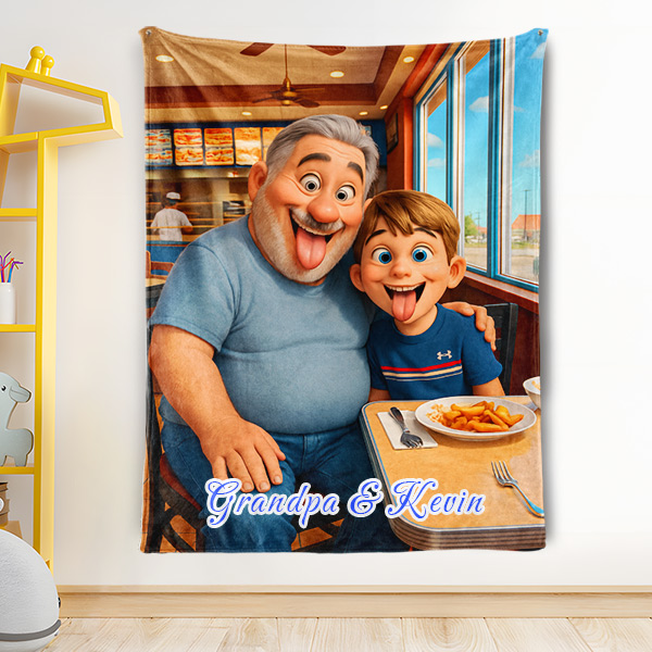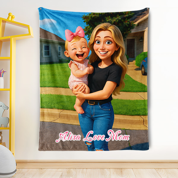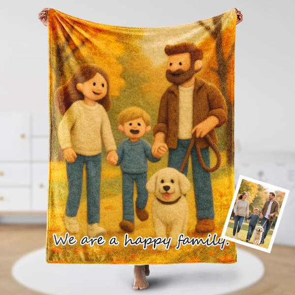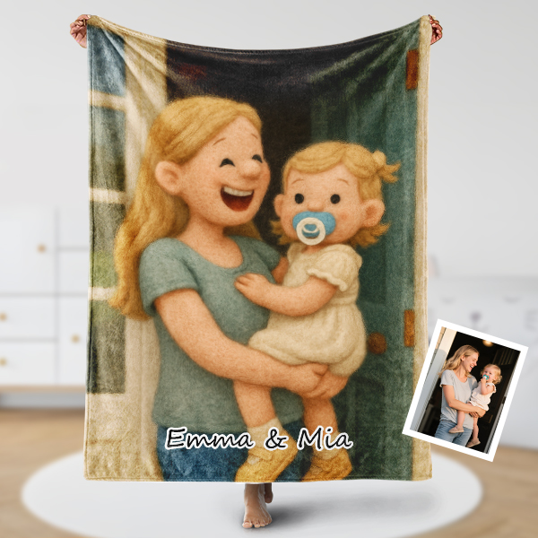 Custom Cartoon Blanket – Personalized 3d Effective Wool Felt Style Blanket With Photo & Name | Unique Gift For Couples & Lovers & Family