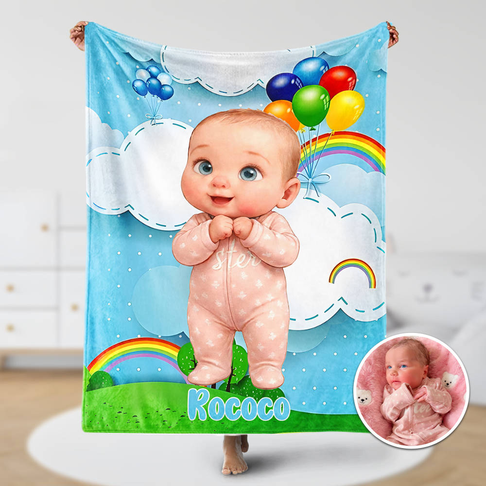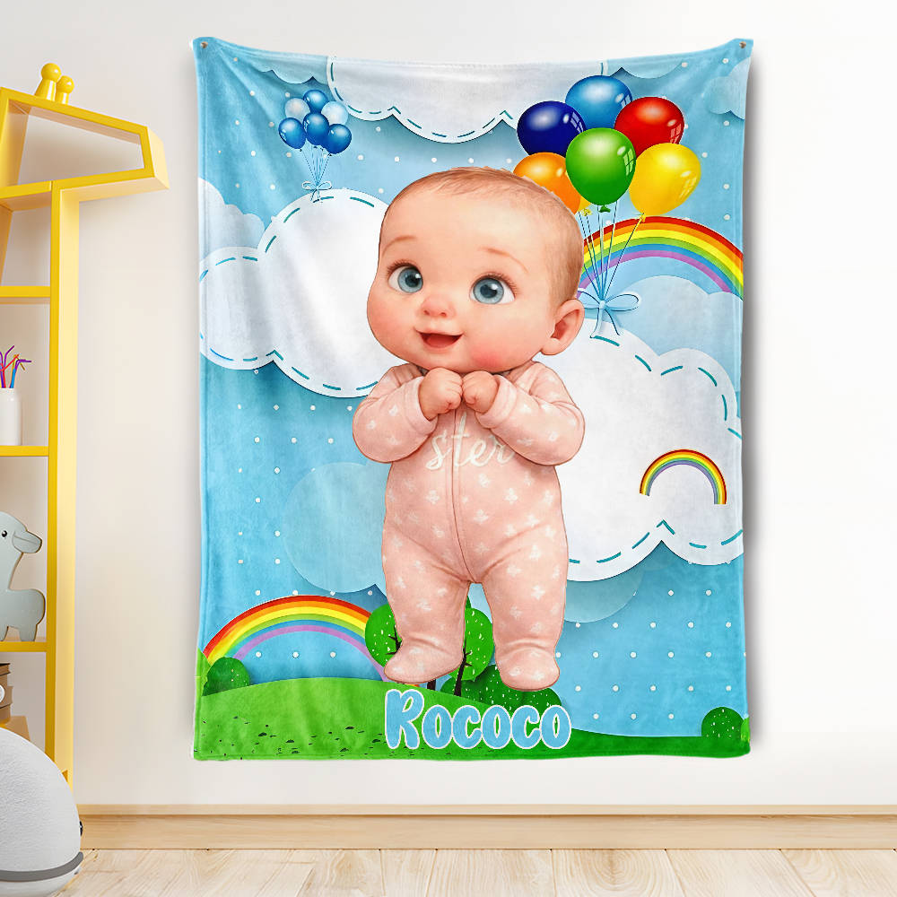 Custom Rainbow Princess With Unicorn Blankets Personalized Face & Name Blanket Gifts For Girls