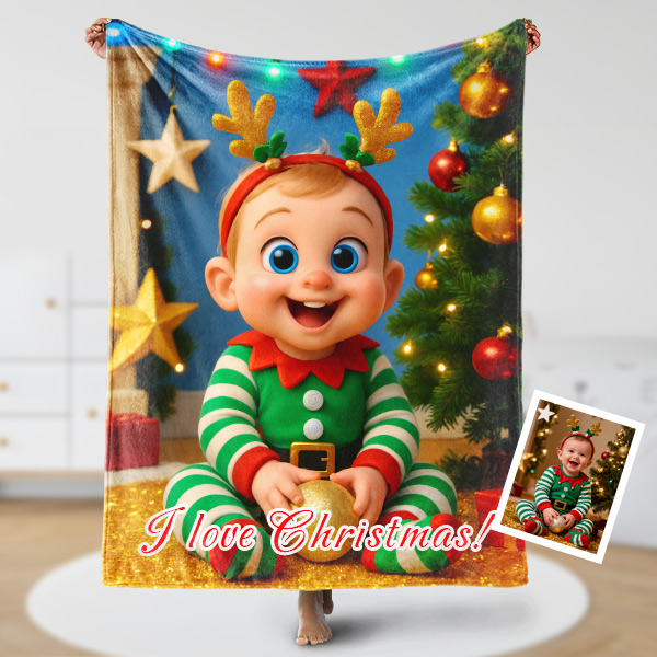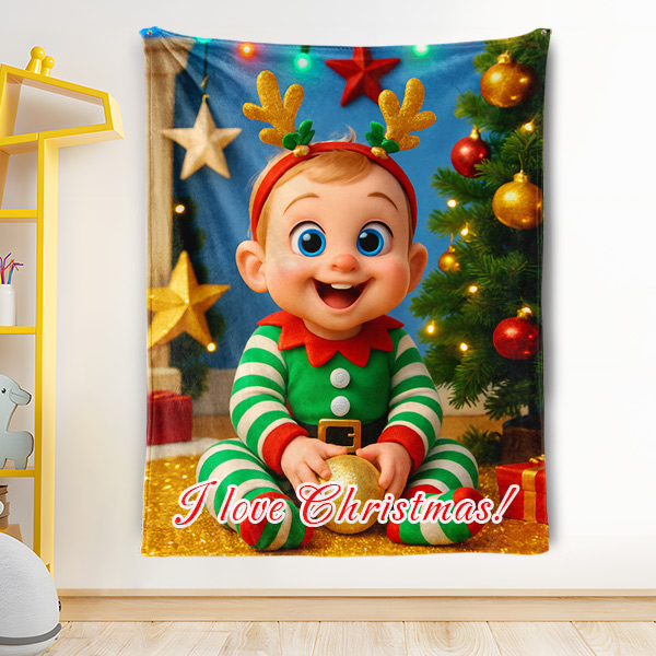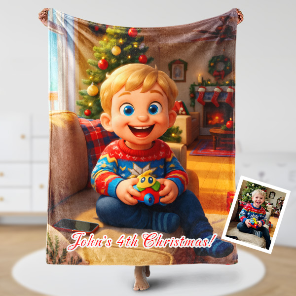 Custom Christmas Blankets Personalized Face & Name Xmas Blanket Gifts For Boys