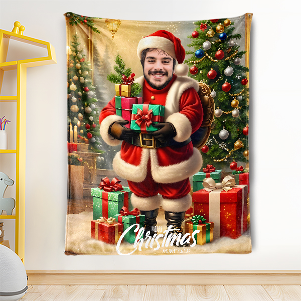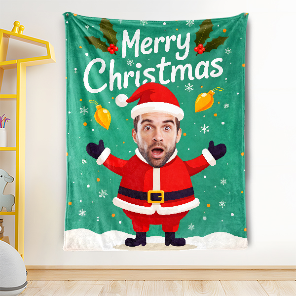 Custom Merry Christmas Blankets Personalized Face & Name Xmas Blanket Gifts For Boys