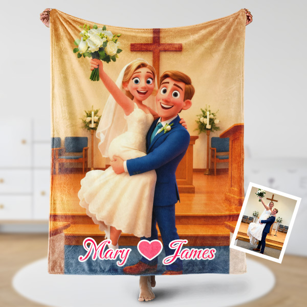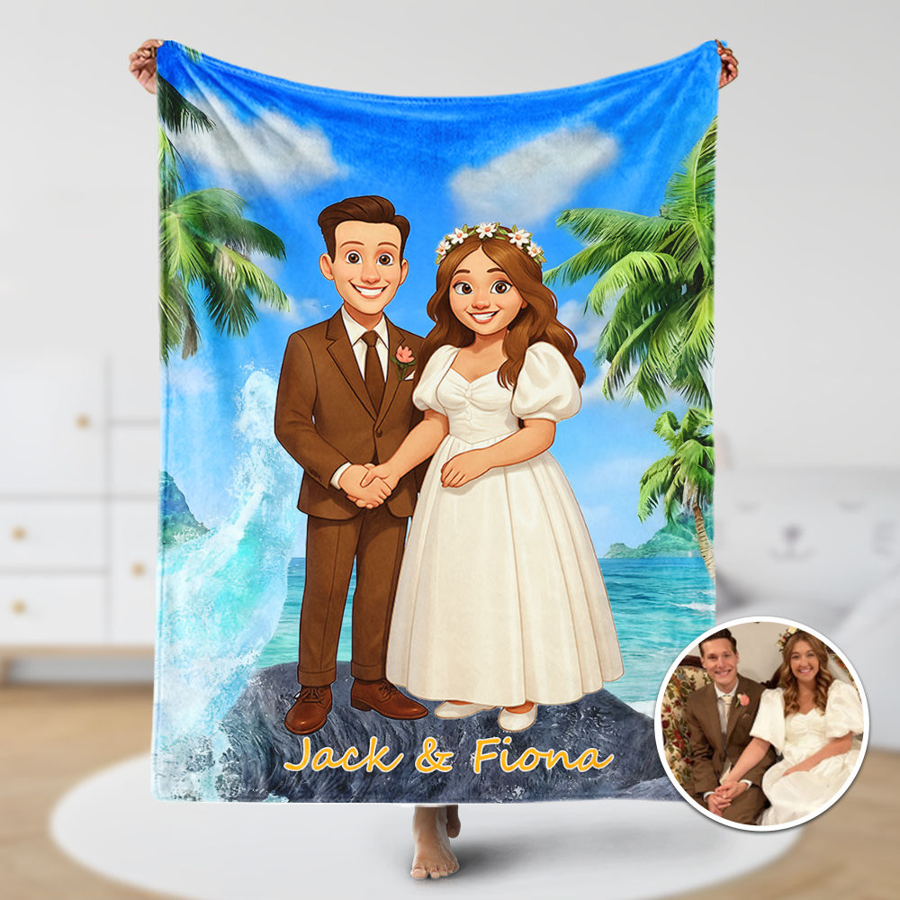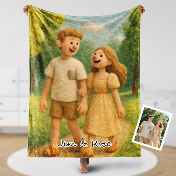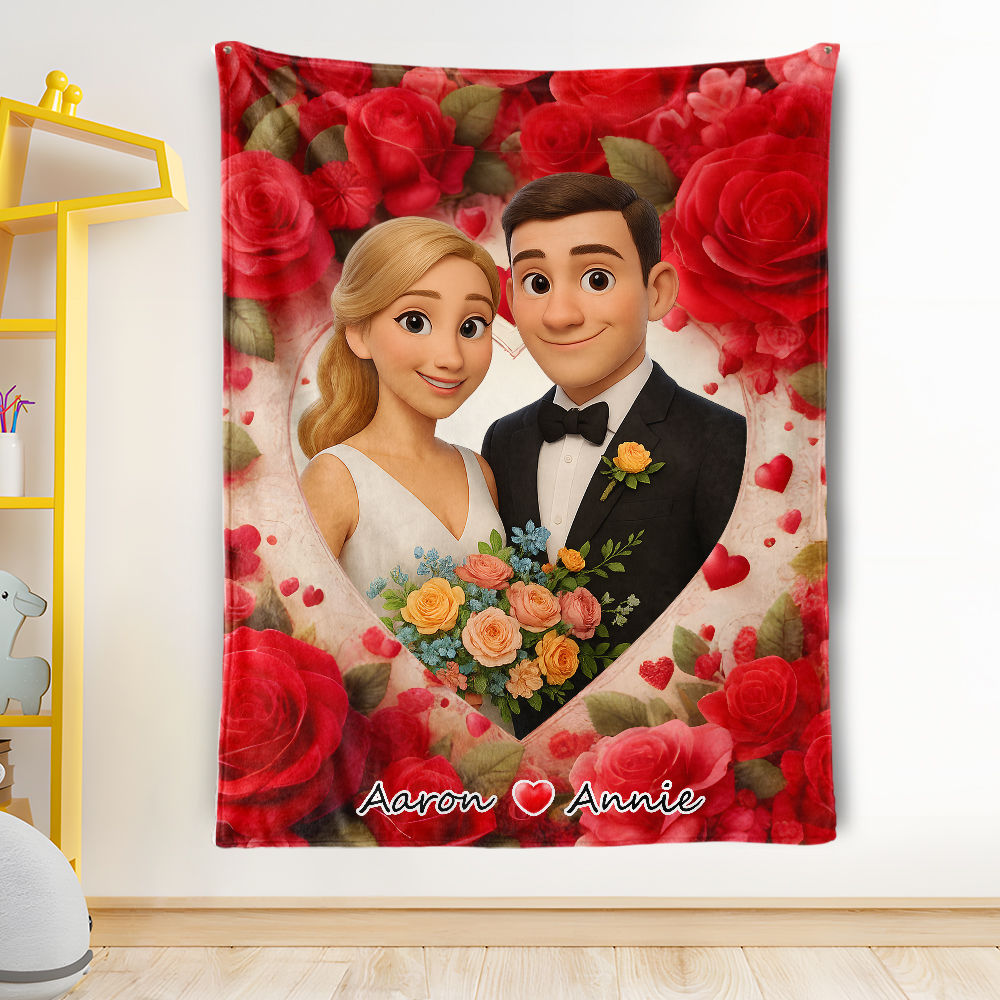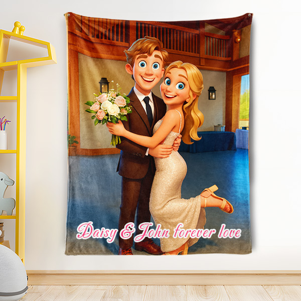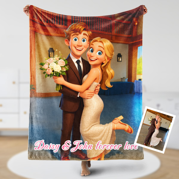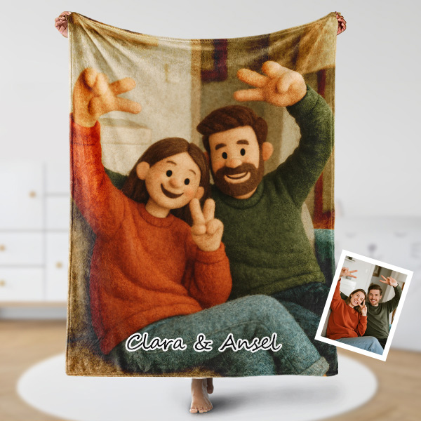 Custom Cartoon Blanket – Personalized 3d Effective Blocks Style Blanket With Photos & Name | Unique Gift For Family For Christmas For Family For Couple