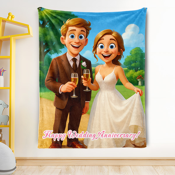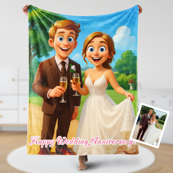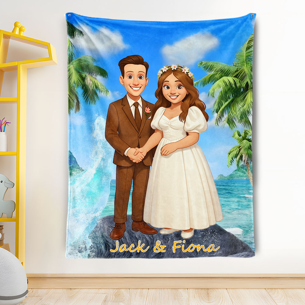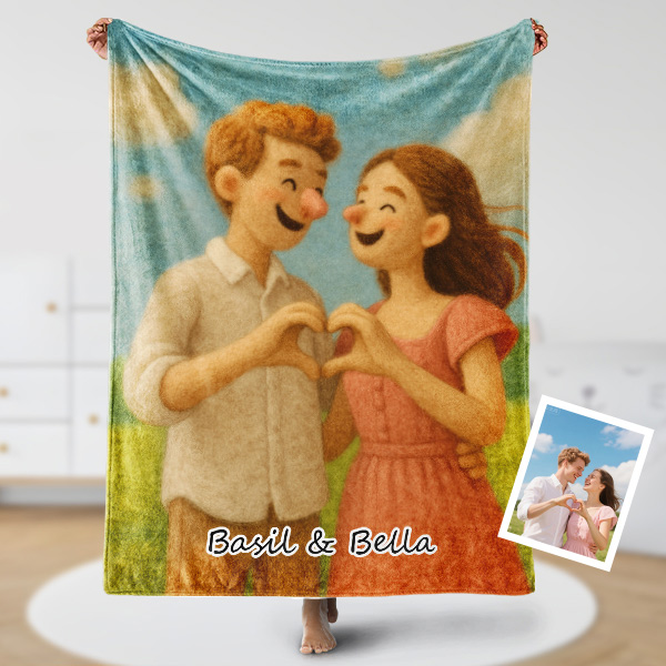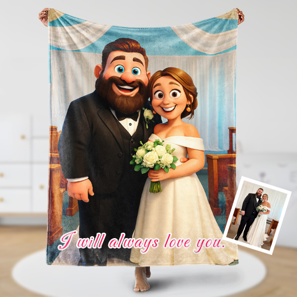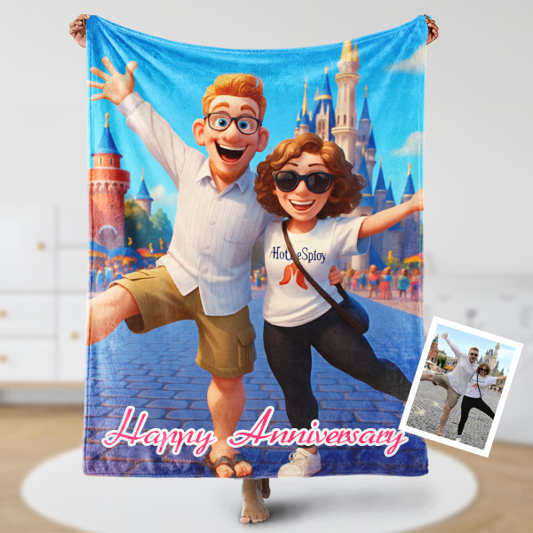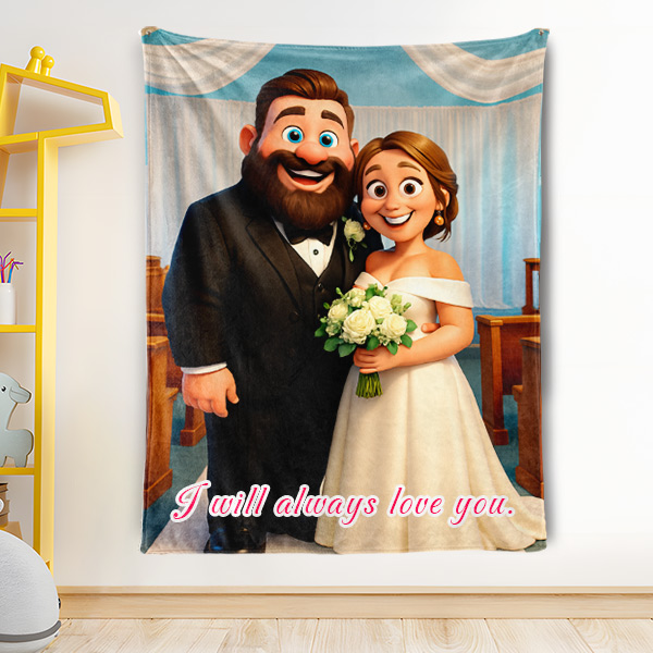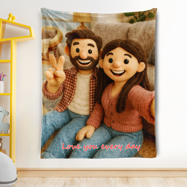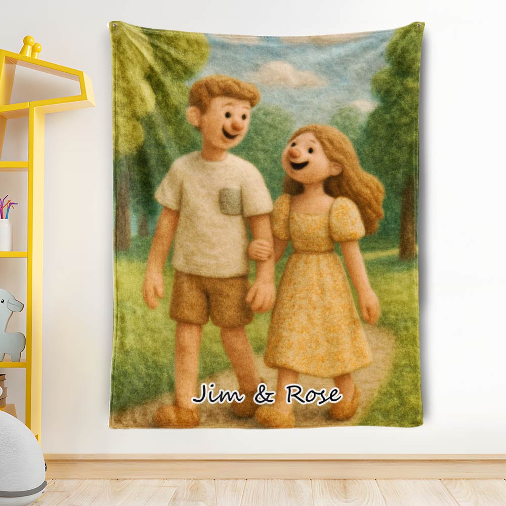 Custom Cartoon Blanket – Personalized 3d Effective Blocks Style Blanket With Photos & Name | Unique Gift For Family For Christmas For Family For Couple