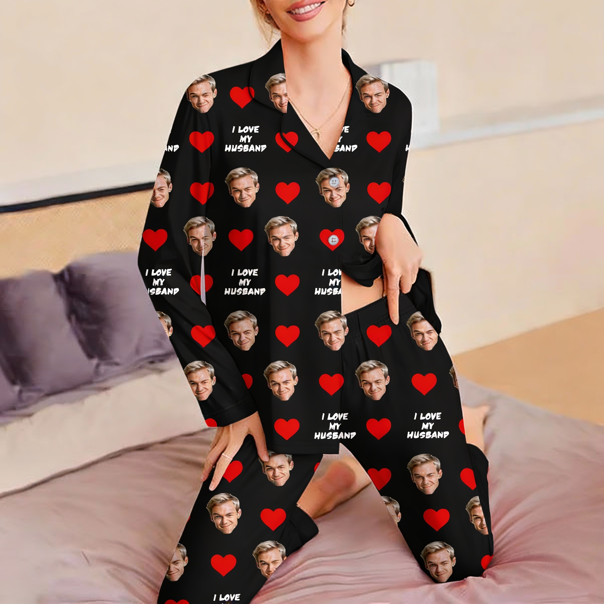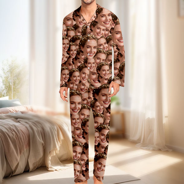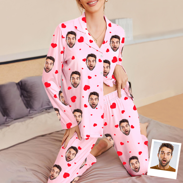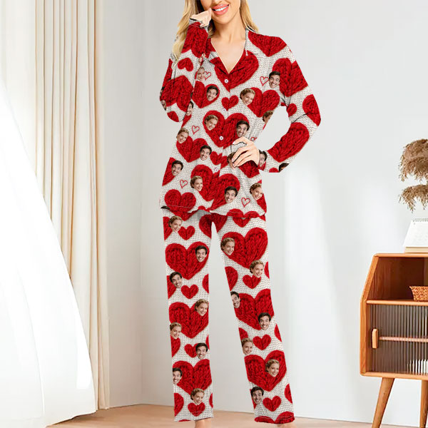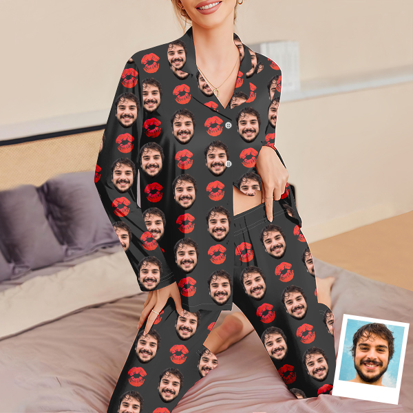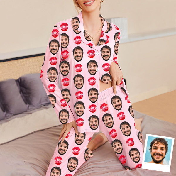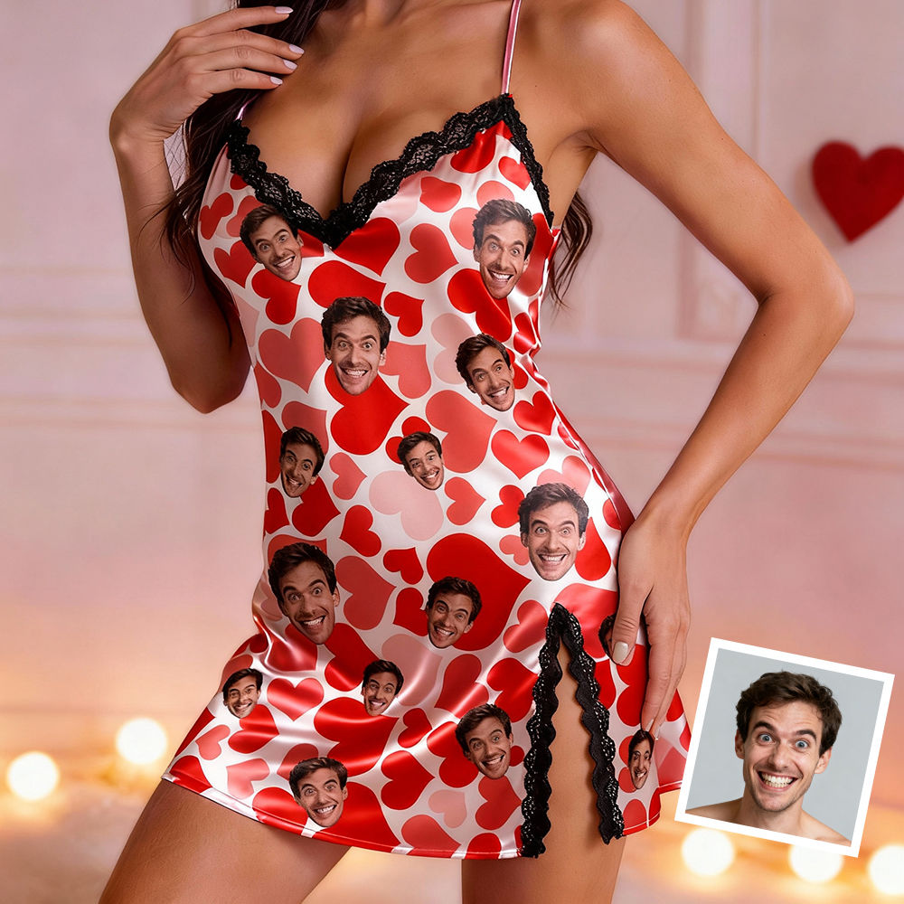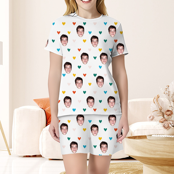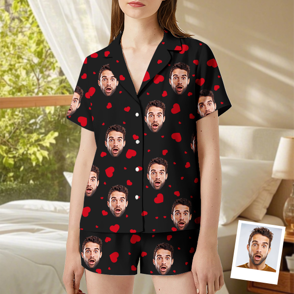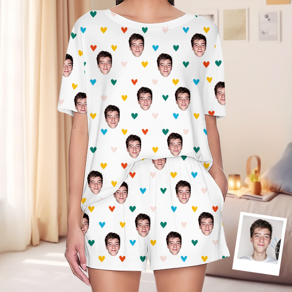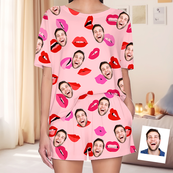 Custom Cami Top Shorts Lace Pajama Set Sleepwear, Face And Name Shorts Pajamas, Custom Photo Pajamas, Valentine's Day Gift, Suitable For Wife And Girlfriend