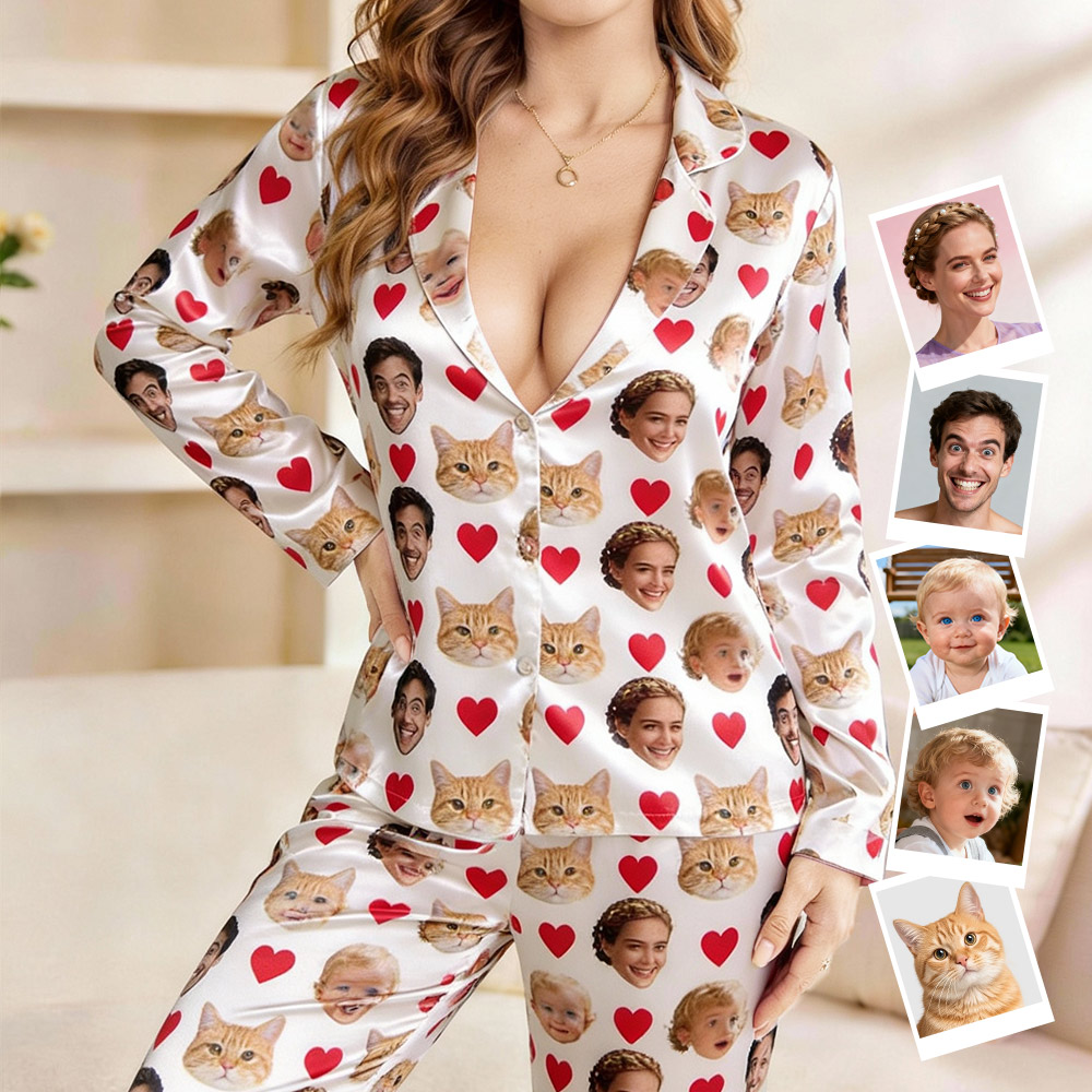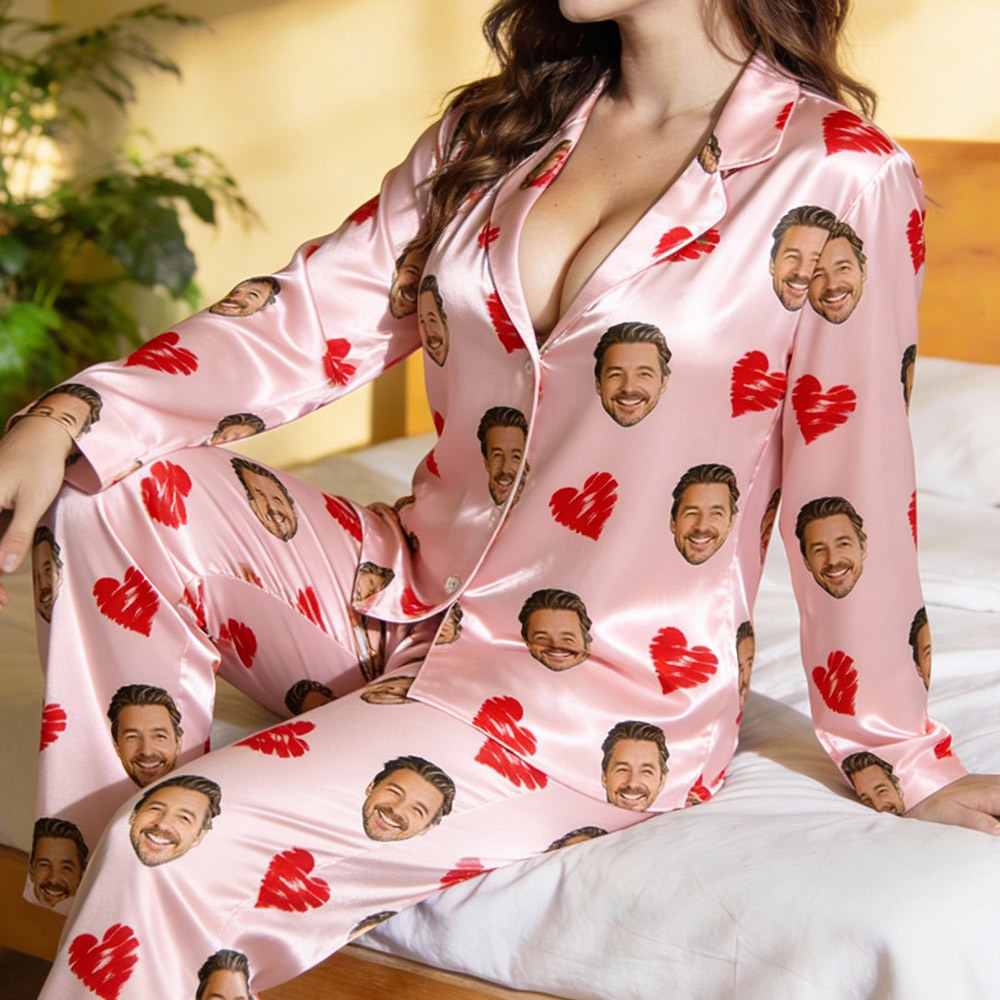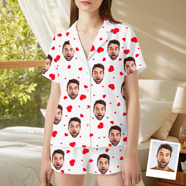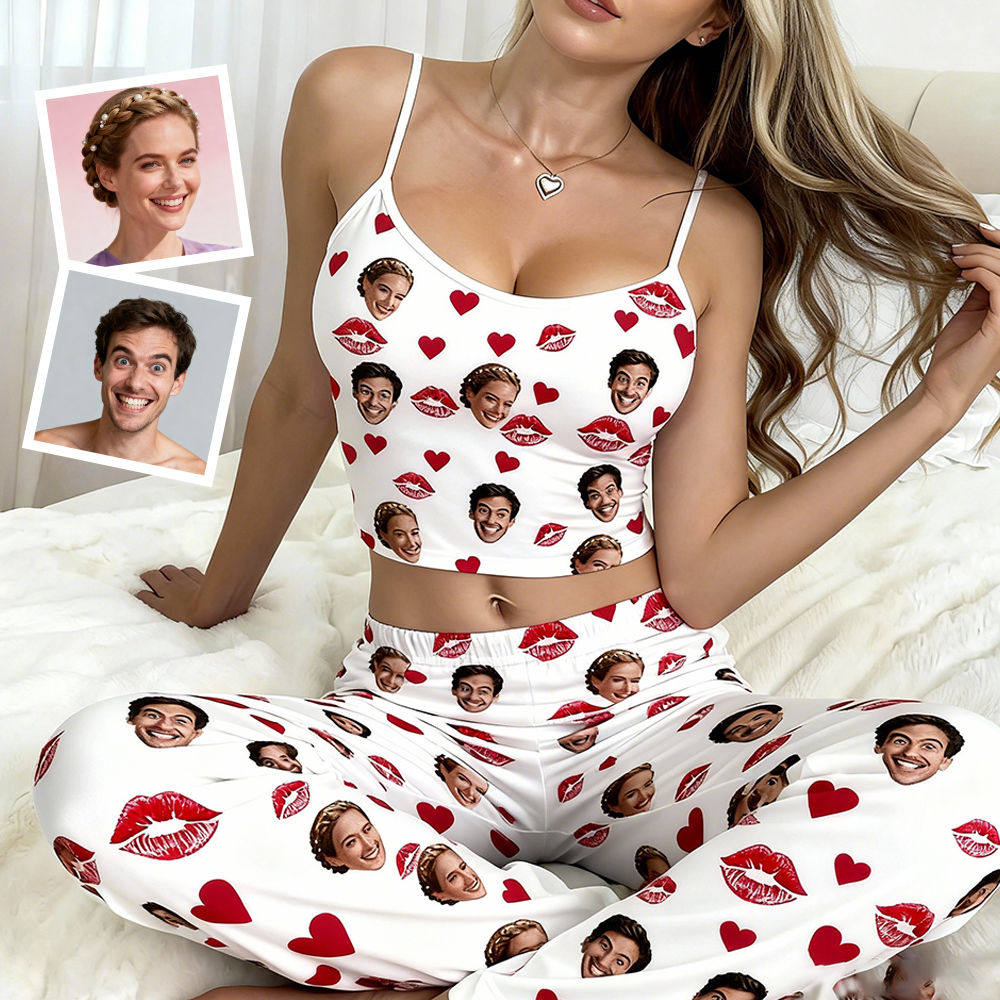 Custom Cami Top Shorts Lace Pajama Set Sleepwear, Face And Name Shorts Pajamas, Custom Photo Pajamas, Valentine's Day Gifts, Suitable For Wife And Girlfriend