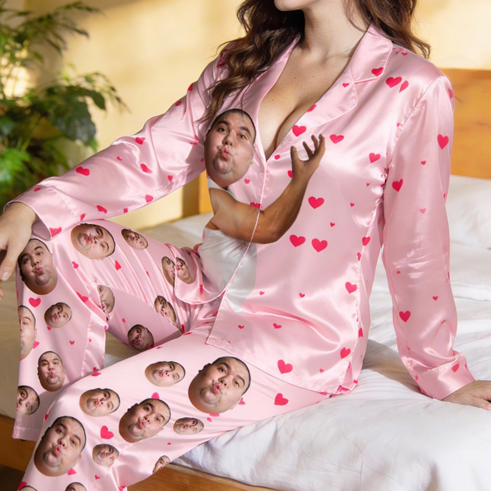 Custom Cami Top Shorts Lace Pajama Set Sleepwear, Face And Name Shorts Pajamas, Custom Photo Pajamas, Valentine's Day Gift, Suitable For Wife And Girlfriend