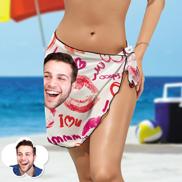 Custom Face Red Lips Swimswear Cover Up Personalized White Beach Wrap Swim Skirts For Women For Her
