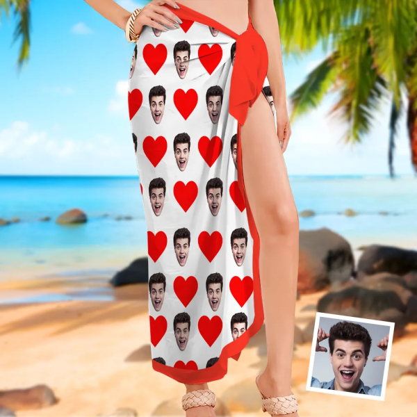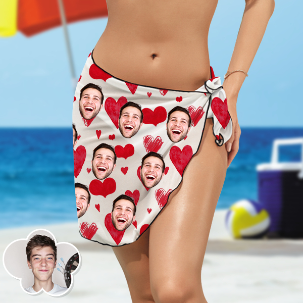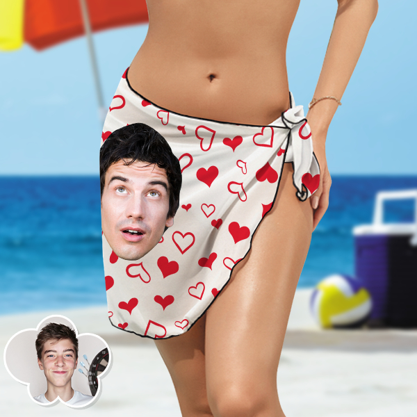 Custom Face Sweet Love Swimswear Cover Up Personalized Red Heart Beach Wrap Swim Skirts For Women For Wife