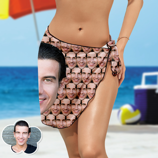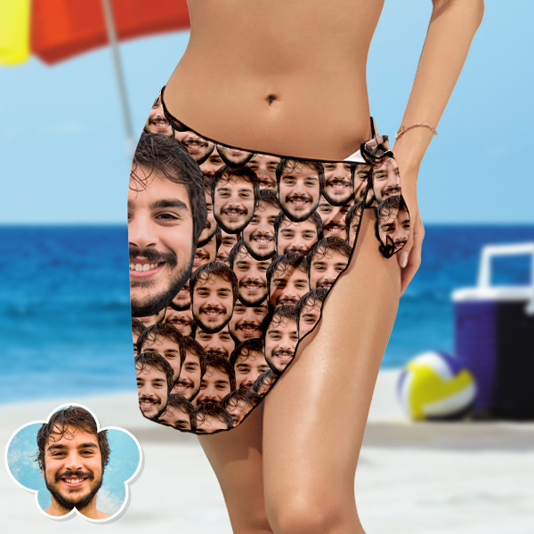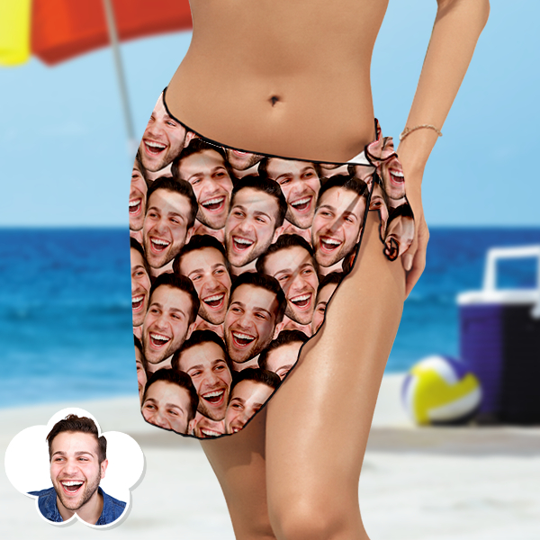 Custom Multi Faces Swimswear Cover Up Personalized Funny Photo Beach Wrap Swim Skirts For Women For Her