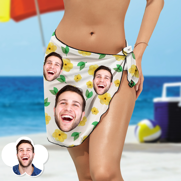 Custom Face Swimswear Cover Up Personalized Funny Beach Wrap Swim Skirts For Women For Her