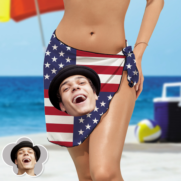 Custom Face American Flag Swimswear Cover Up Beach Wrap Skirts For Women For Wife