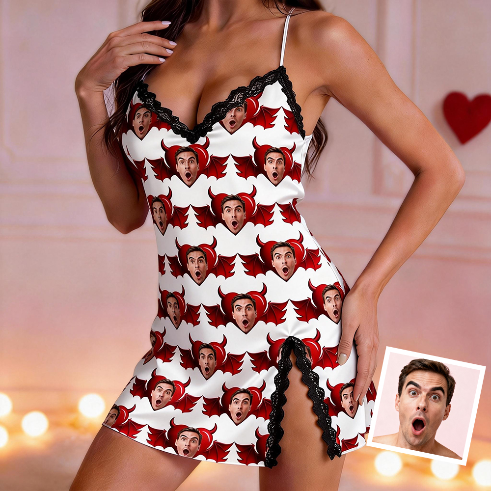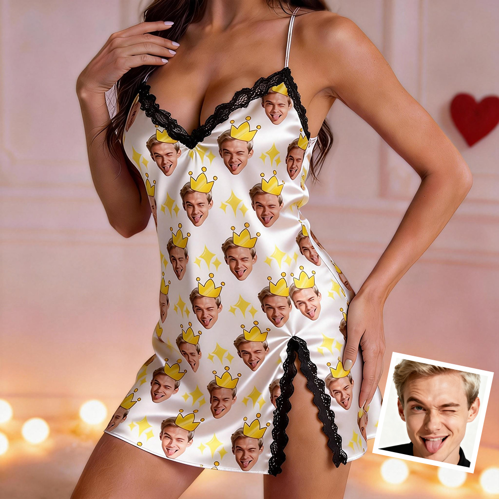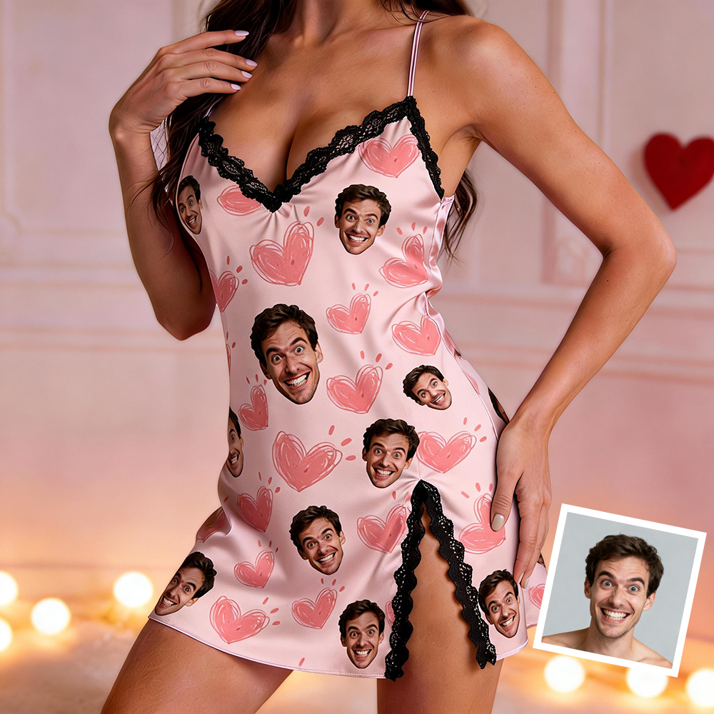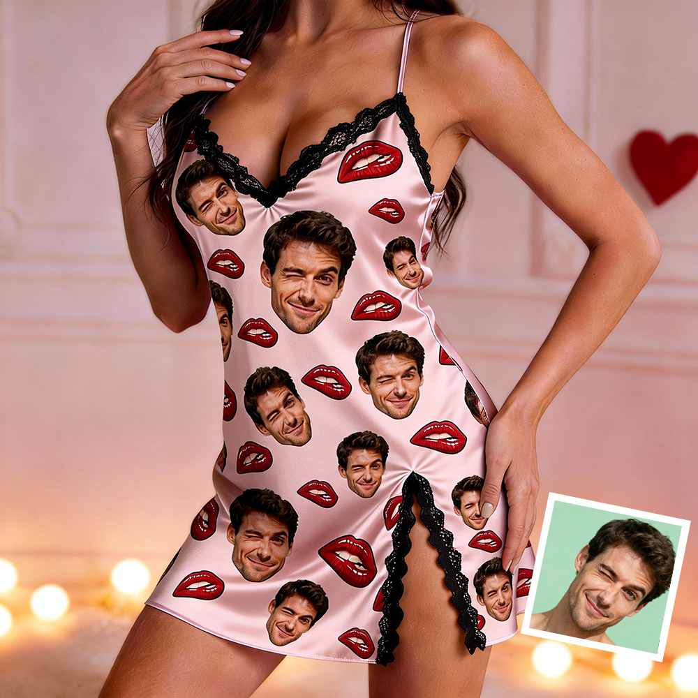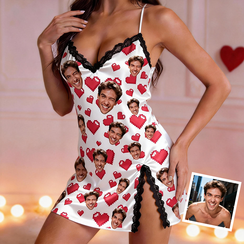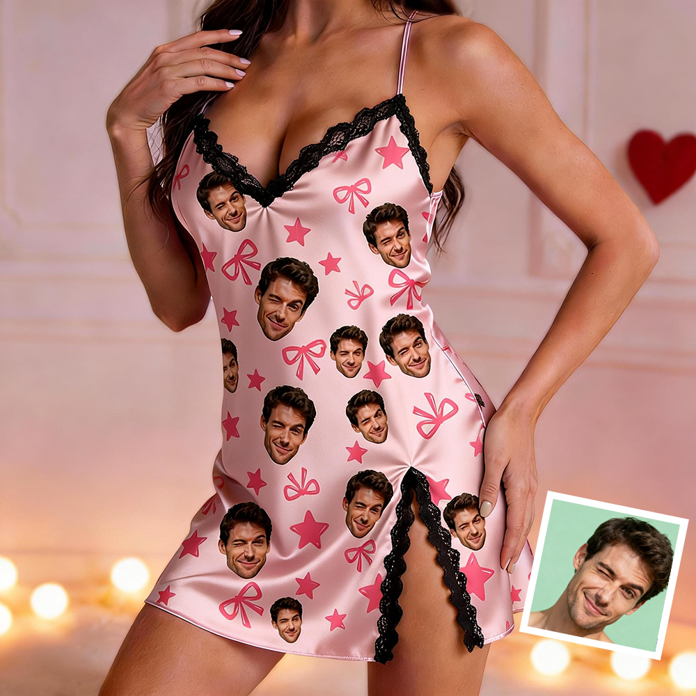 Custom Dress Pajamas Face & Name Lace Dress Pajamas Set Custom Photo Pajamas Gifts For Valentine Day For Wife For Girlfriend