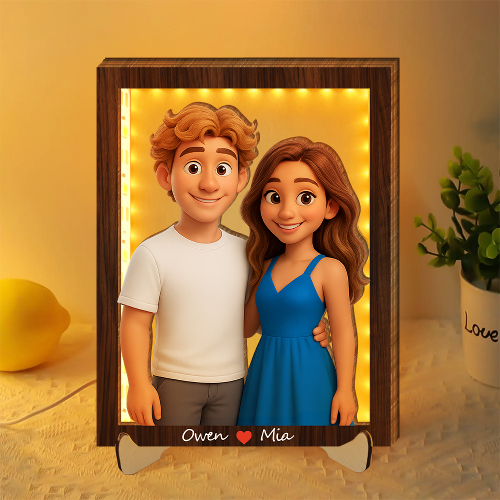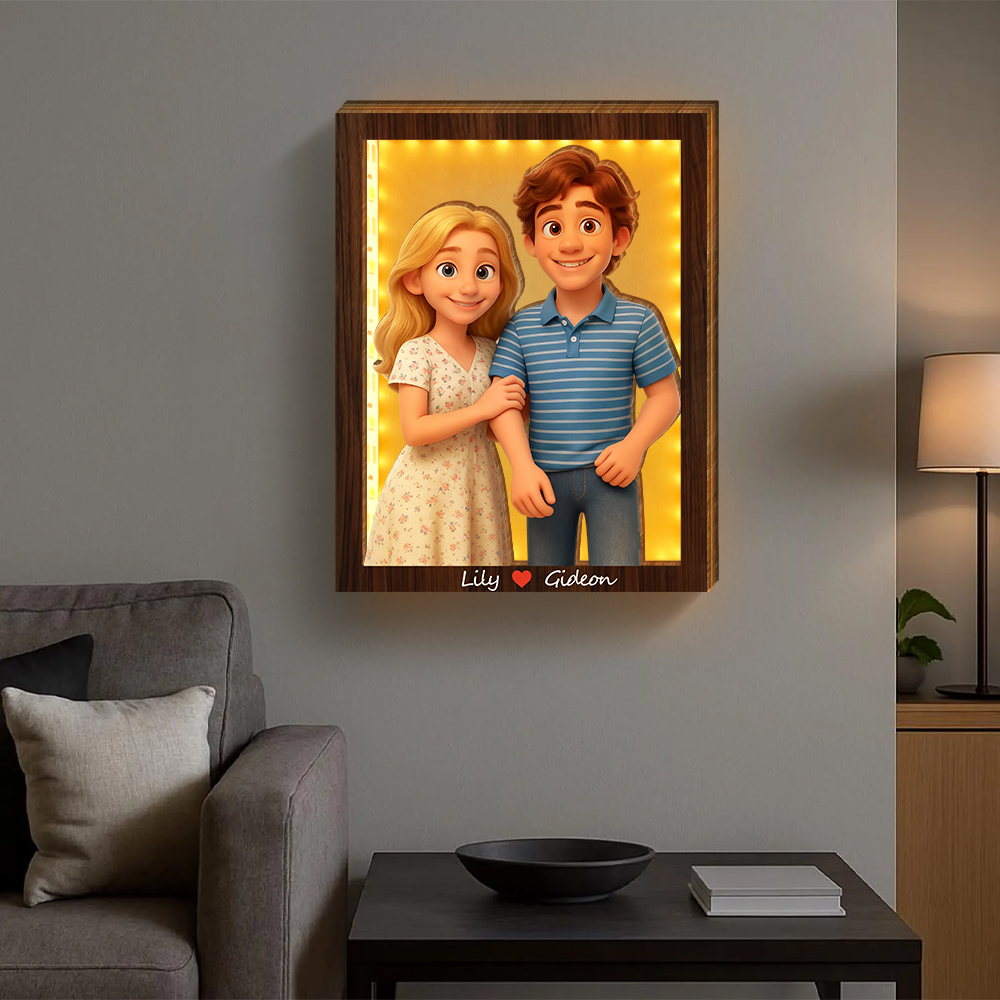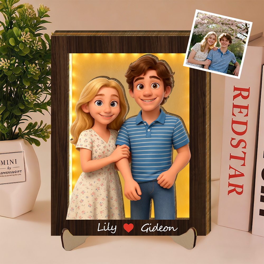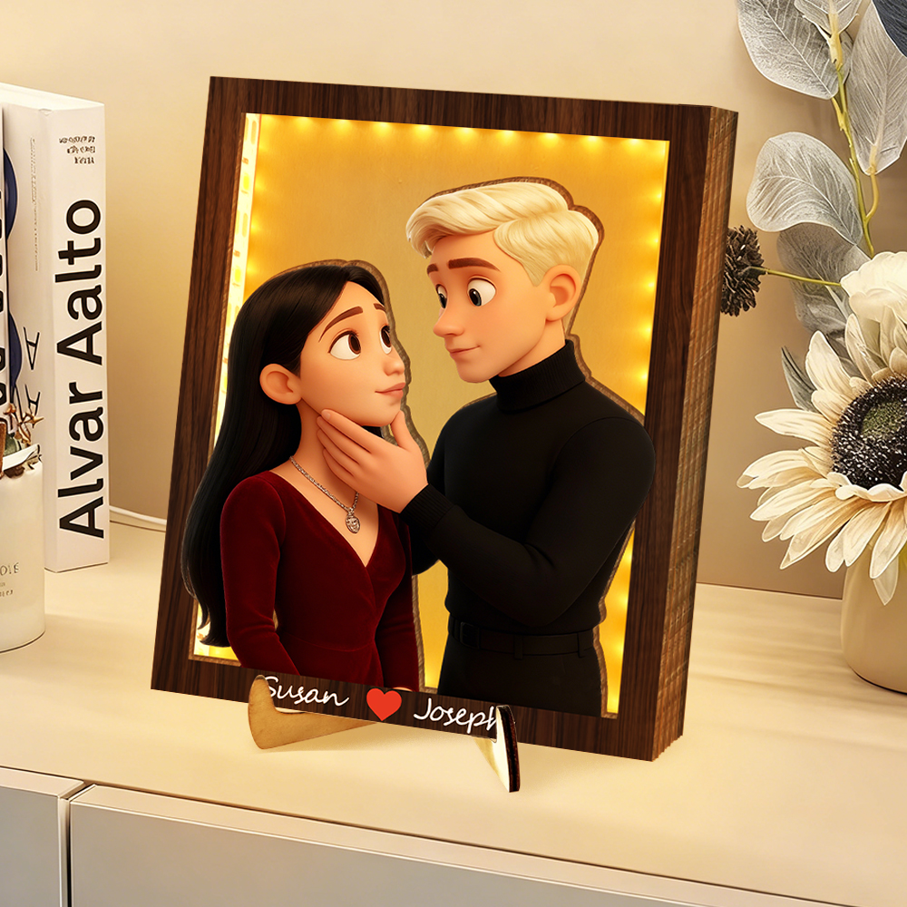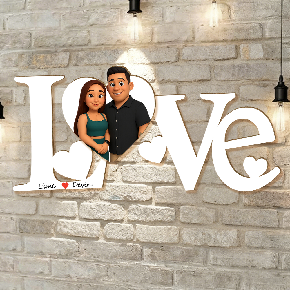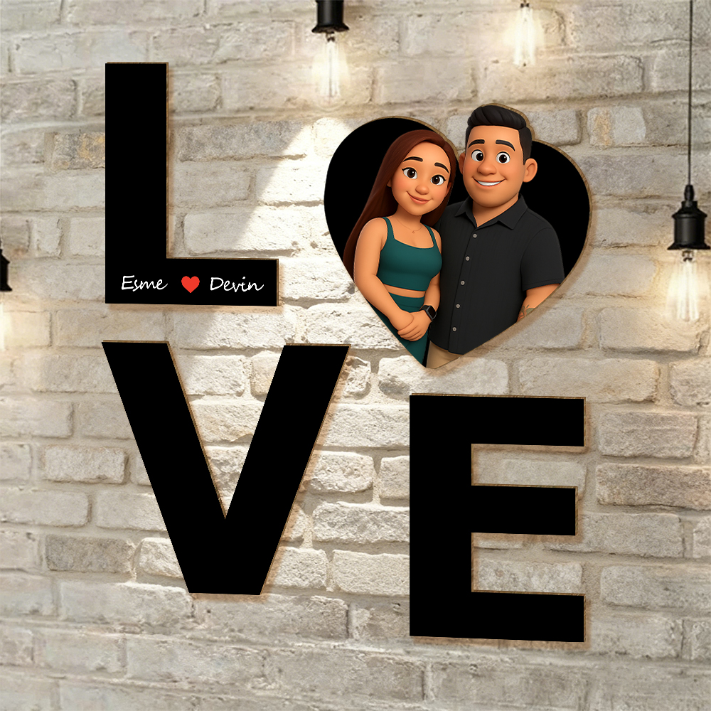 Personalized 3d Wooden Cartooned Light Wall Art, Custom Cartoon Portrait, Wood Home Decor, Night Light Gift, Valentine's Day Gift, Birthday Gifts, Anniversary Gifts For Couples