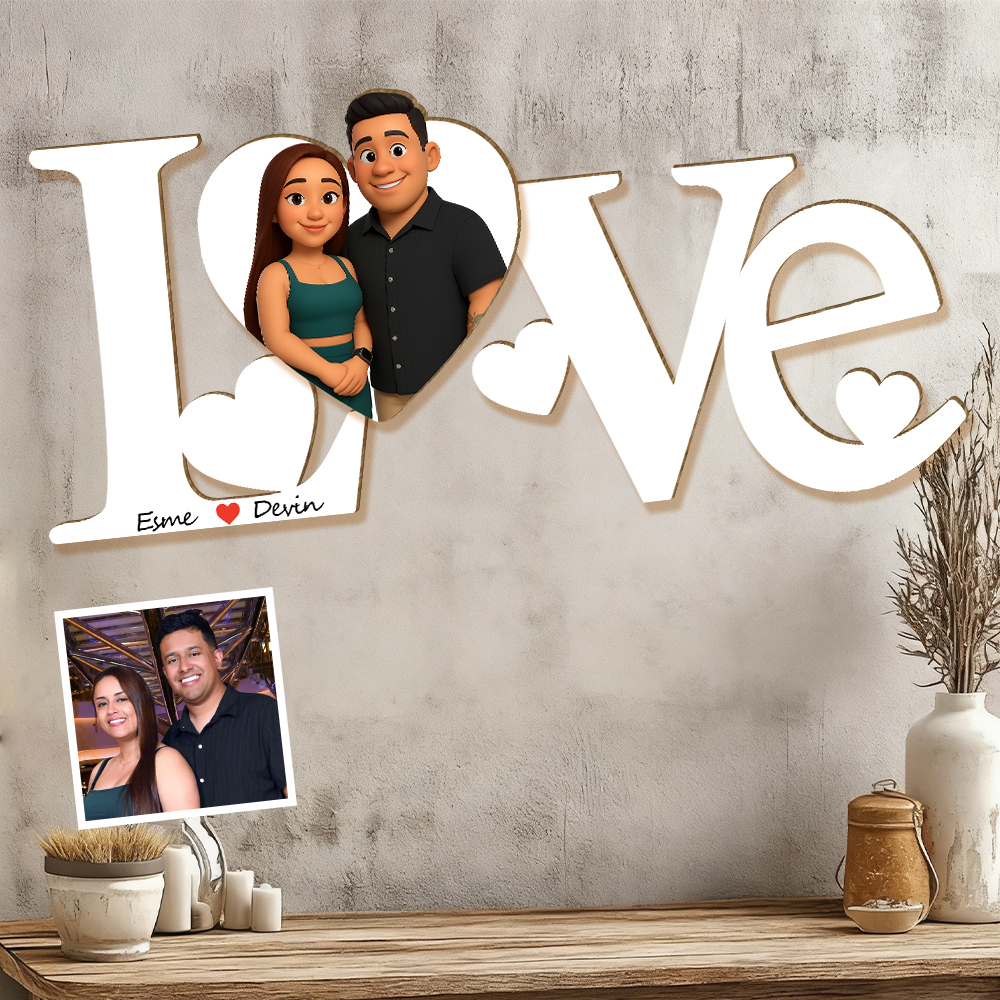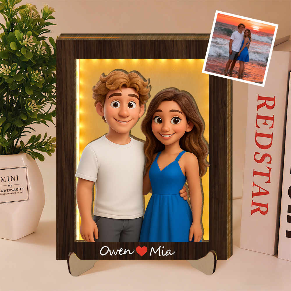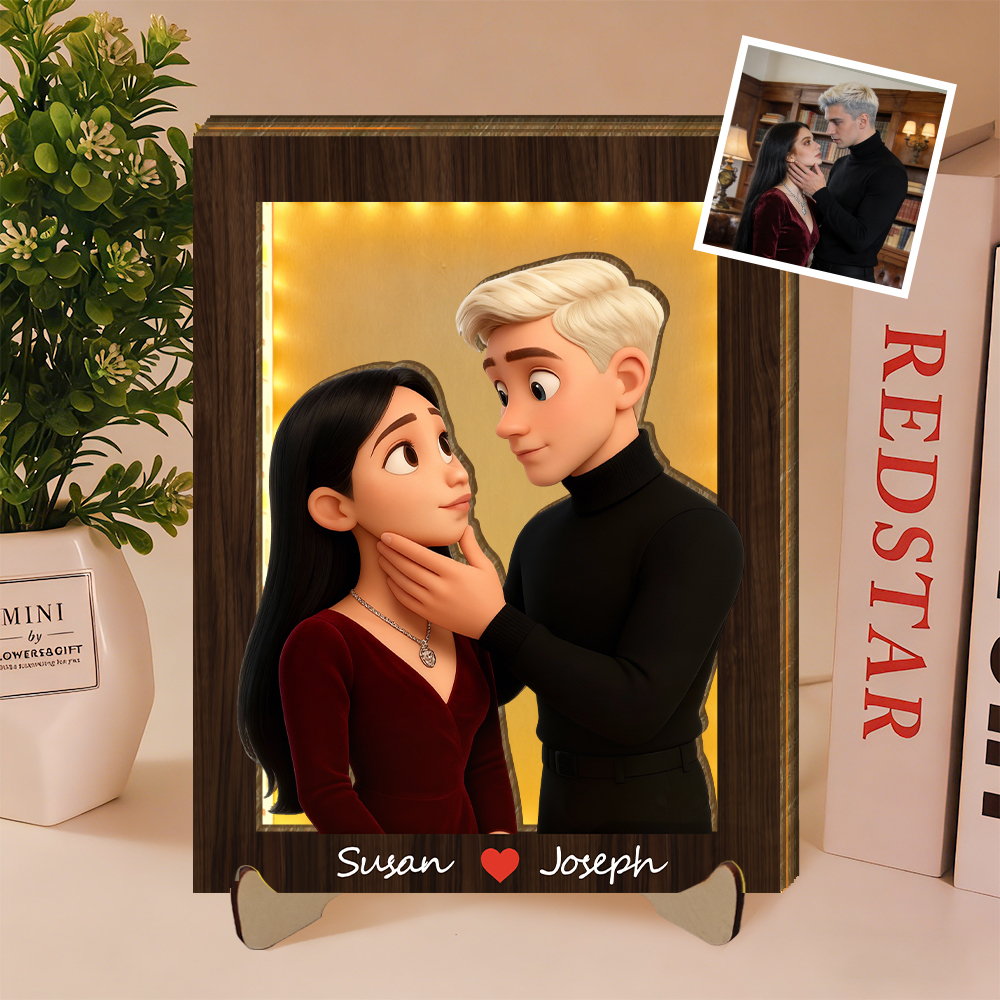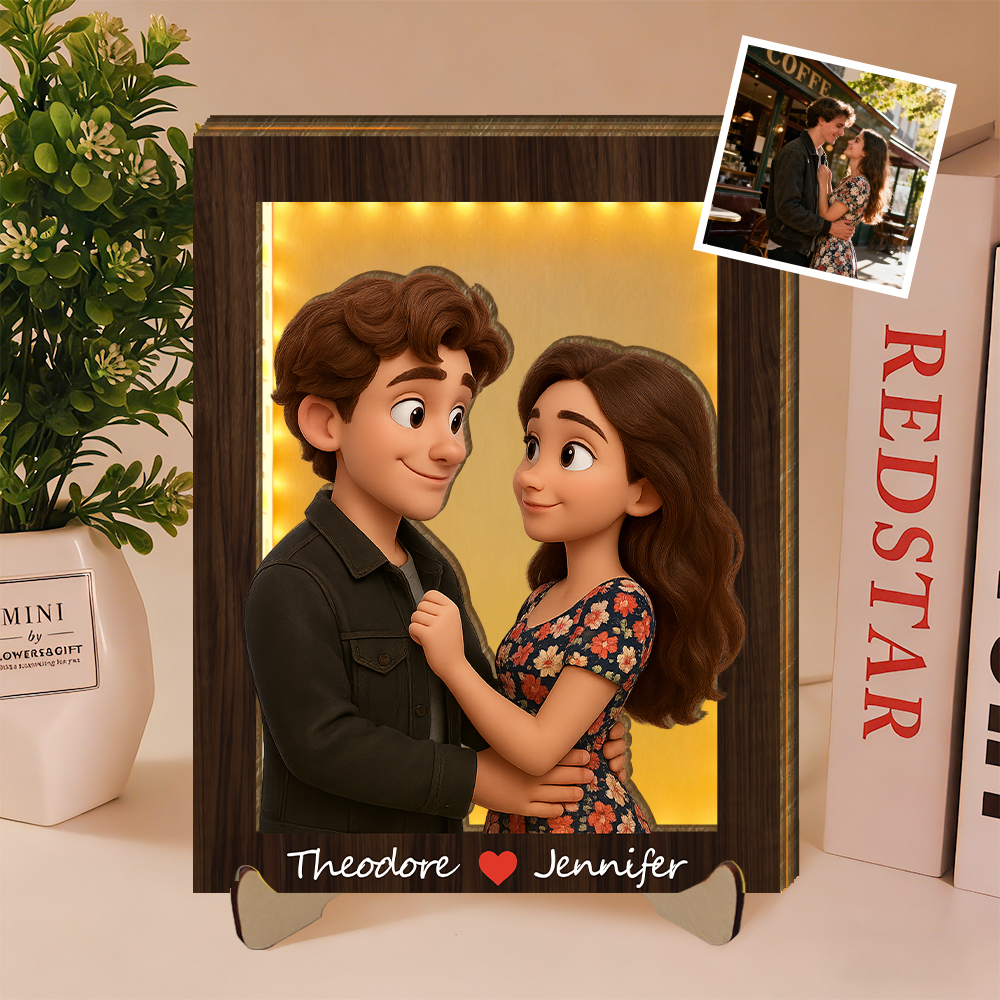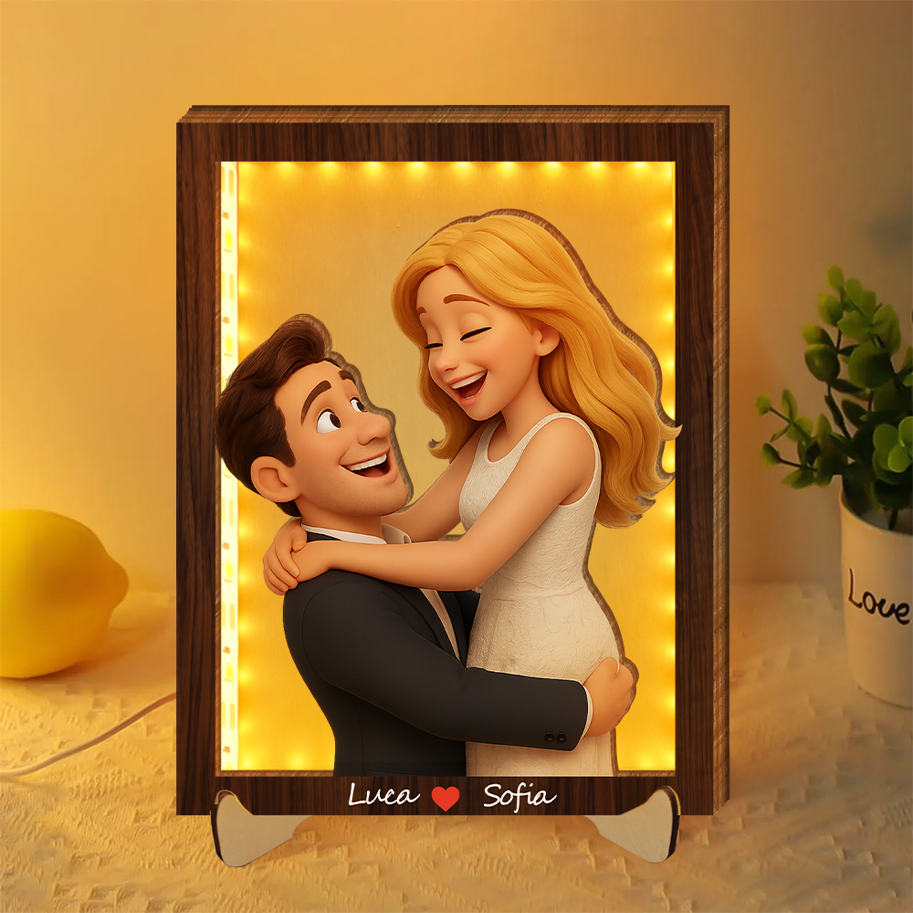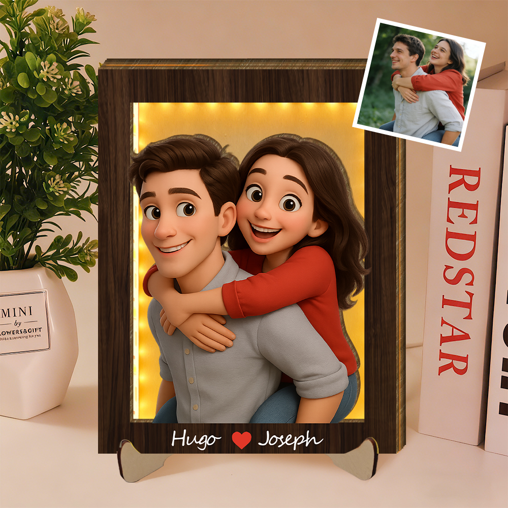 Personalized 3d Wooden Cartooned Light Wall Art, Custom Cartoon Portrait, Wood Home Decor, Night Light Gift, Valentine's Day Gift, Birthday Gifts, Anniversary Gifts For Couples