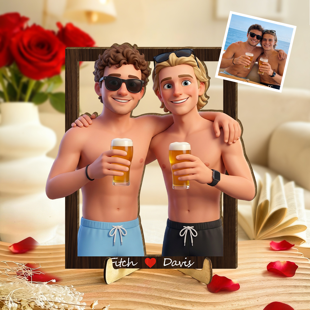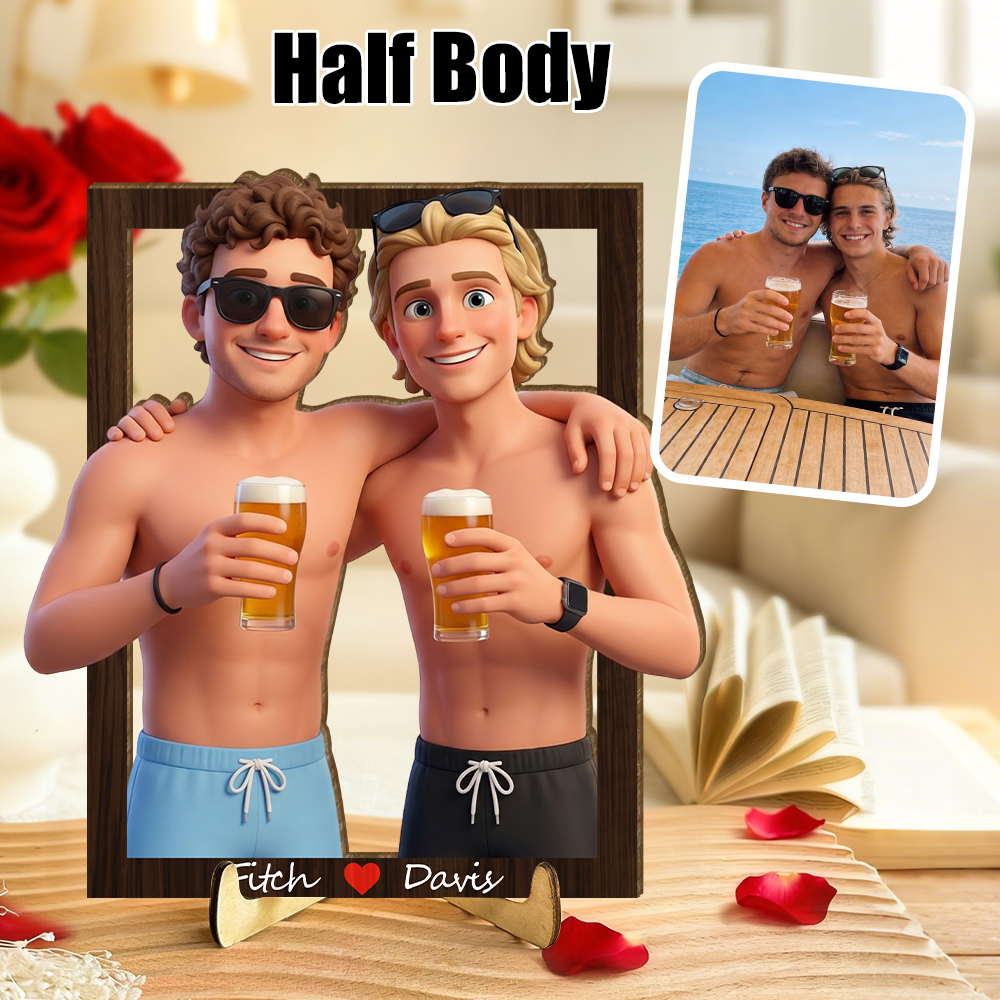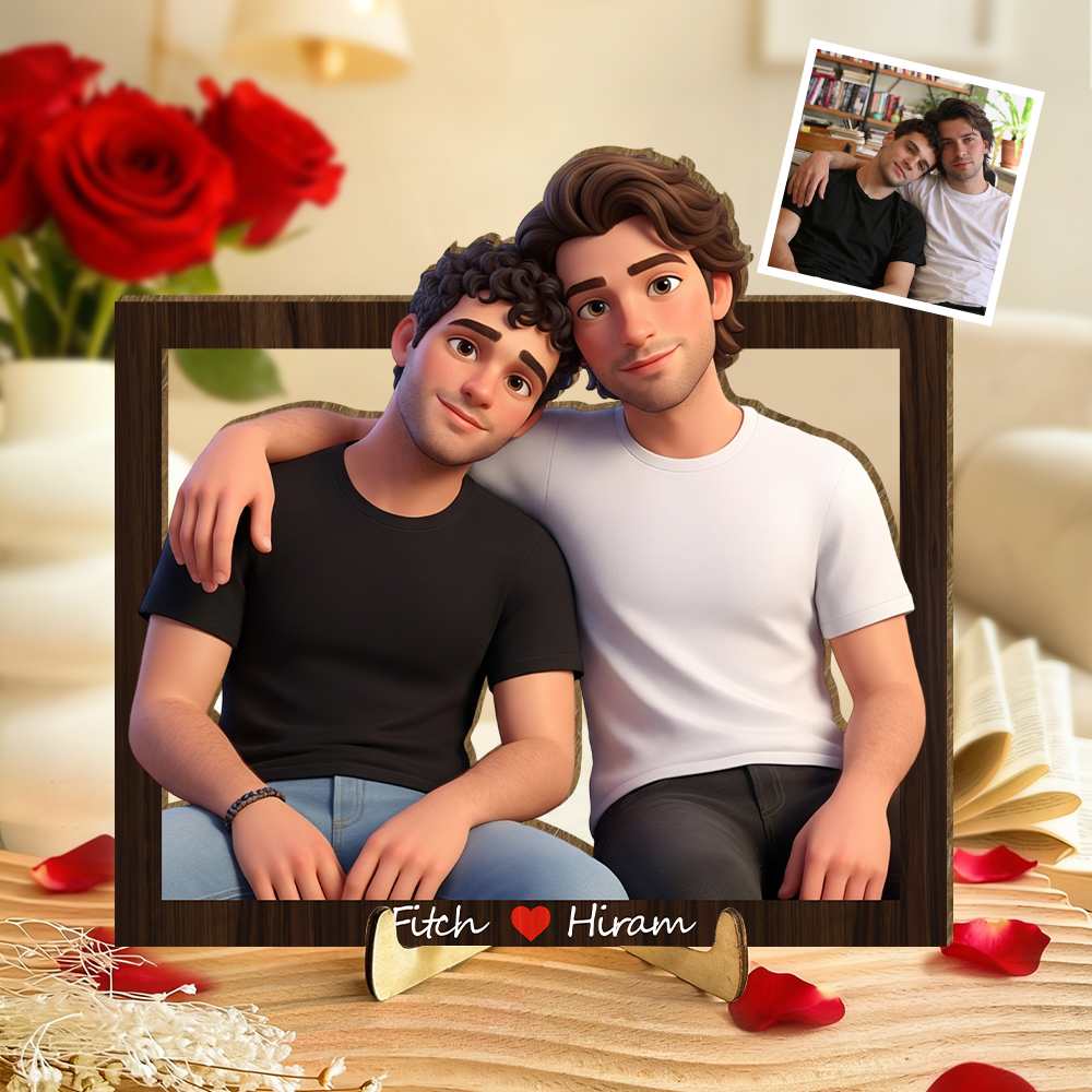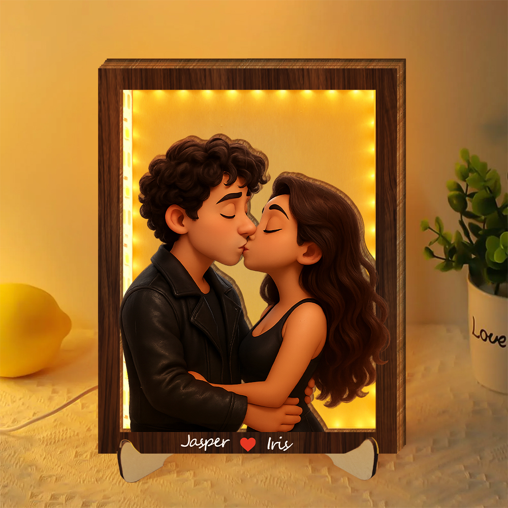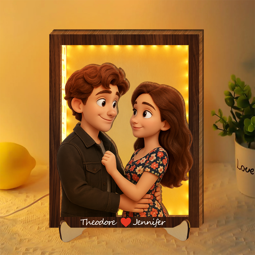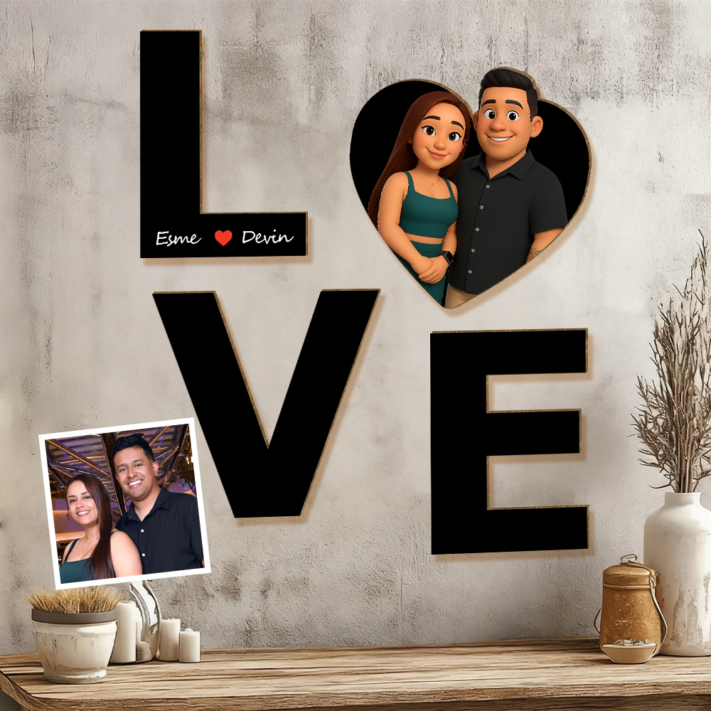 Personalized 3d Wooden Cartooned Light Wall Art, Custom Cartoon Portrait, Wood Home Decor, Night Light Gift, Valentine's Day Gift, Birthday Gifts, Anniversary Gifts For Couples