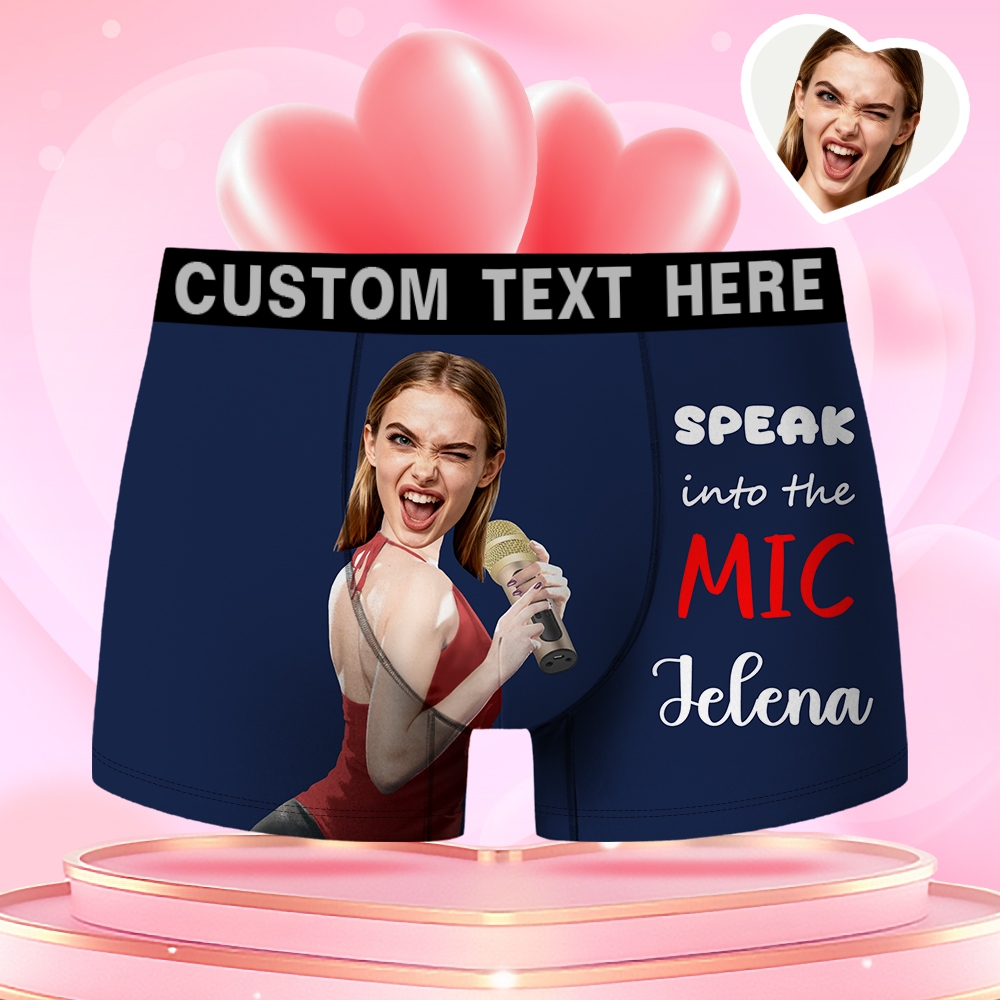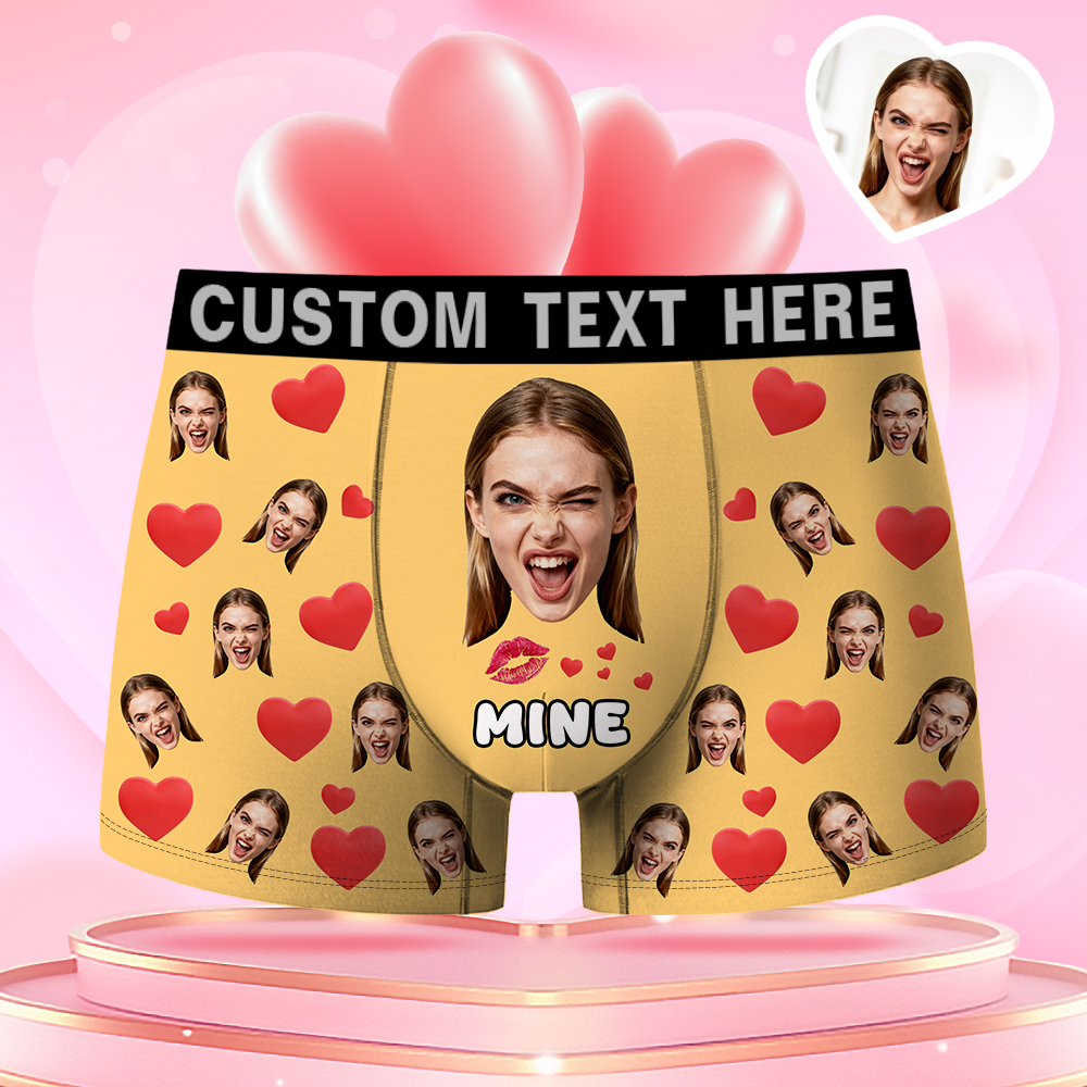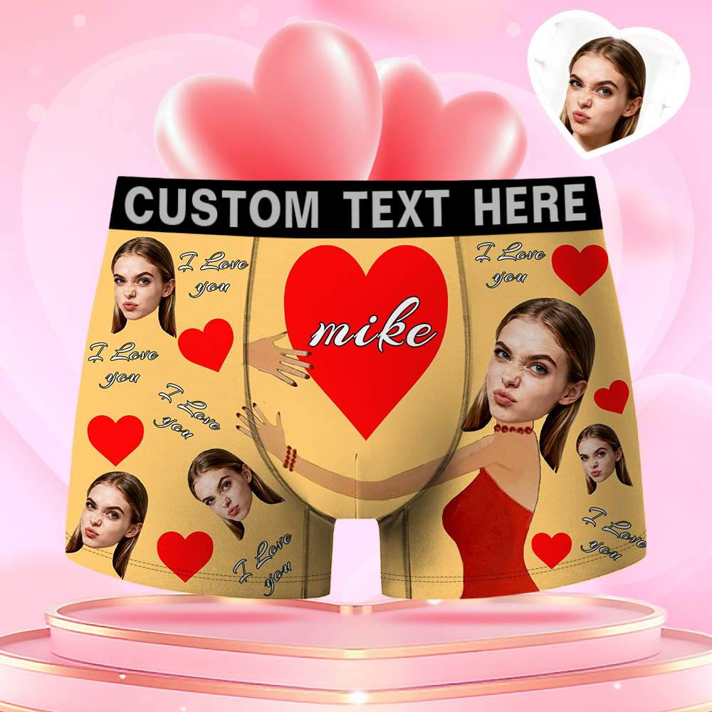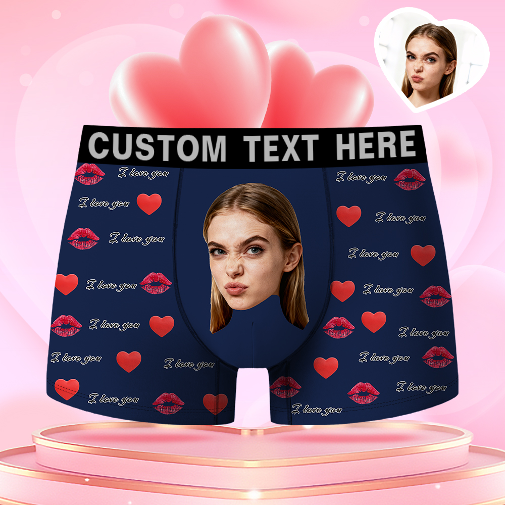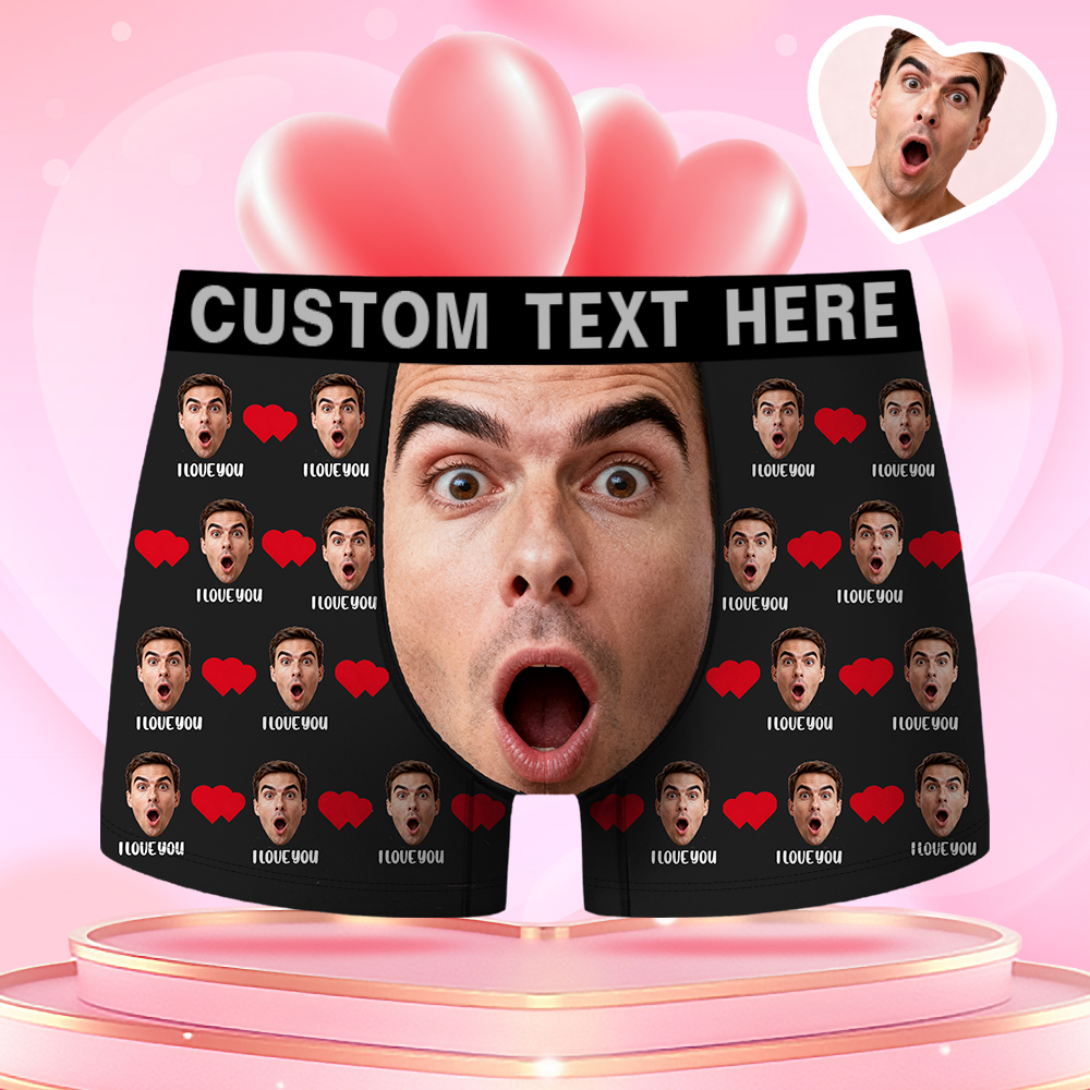 Valentine's Day Gifts Custom Face Men's Boxer Funny Face Gift For Boyfriend Style Underwear Birthday Gift For Husband, Waistband Text Boxer Gifts