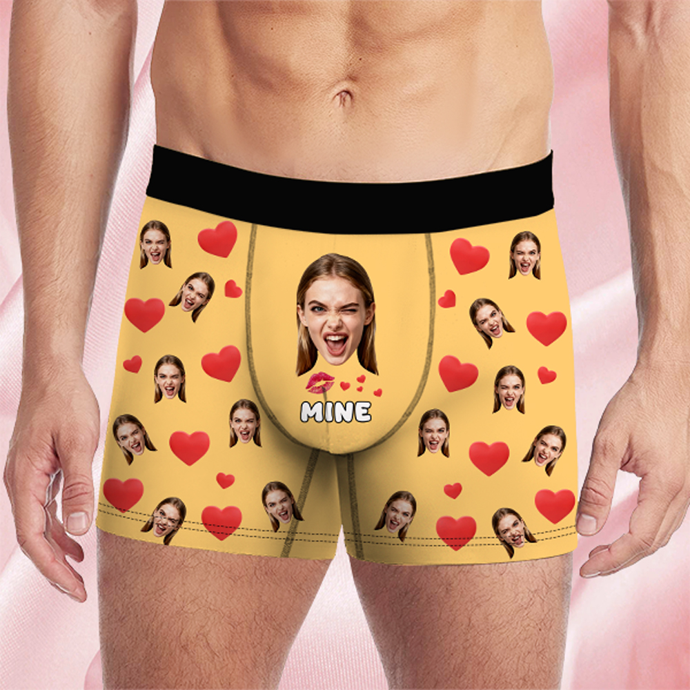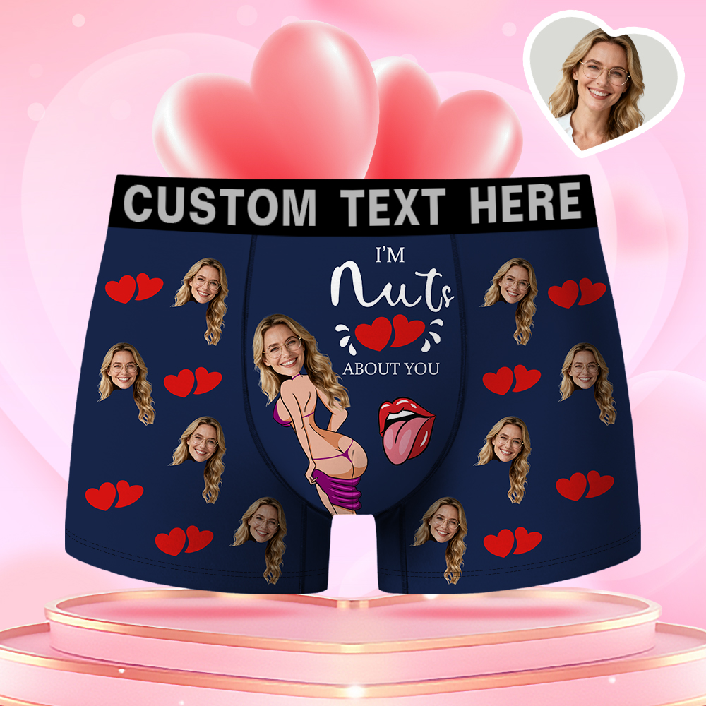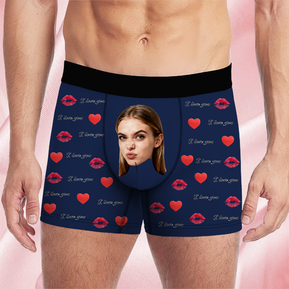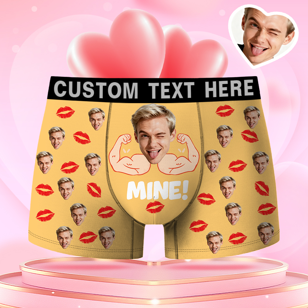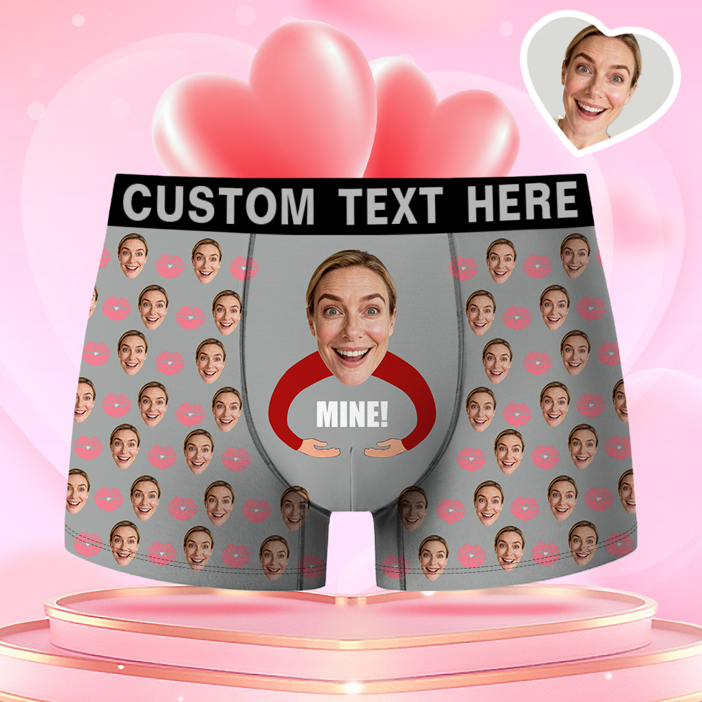Valentine's Day Gifts Custom Face Men's Boxer Funny Face Gift For Boyfriend Style Underwear Birthday Gift For Husband, Waistband Text Boxer Gifts