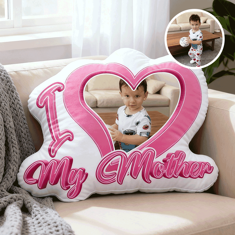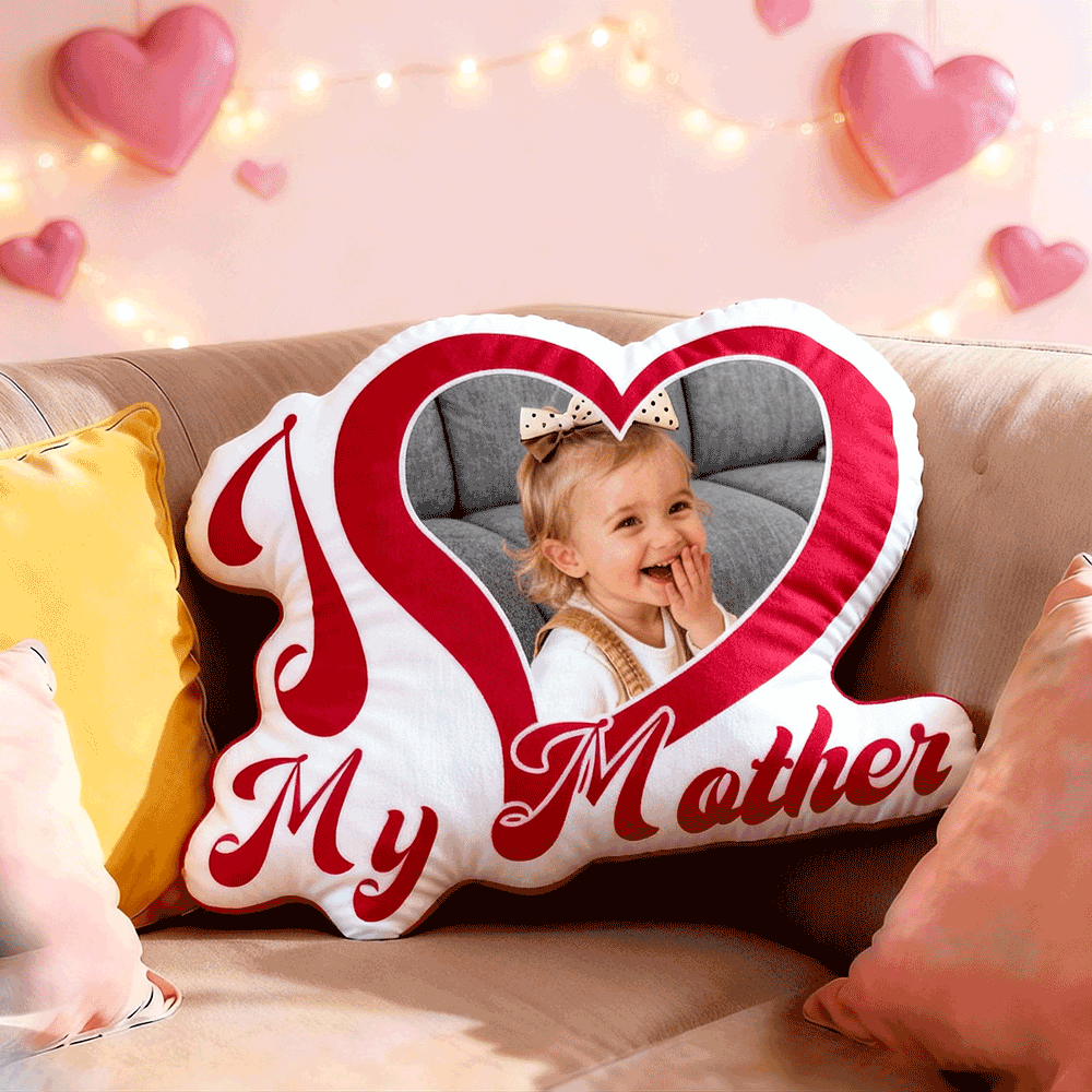Custom Couple Photo Pillow – Red Heart-shaped Personalized Pillows For Mother’s Day Gifts