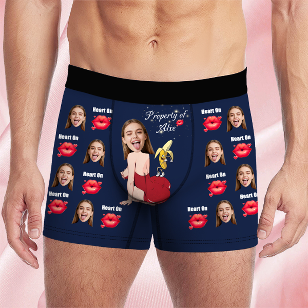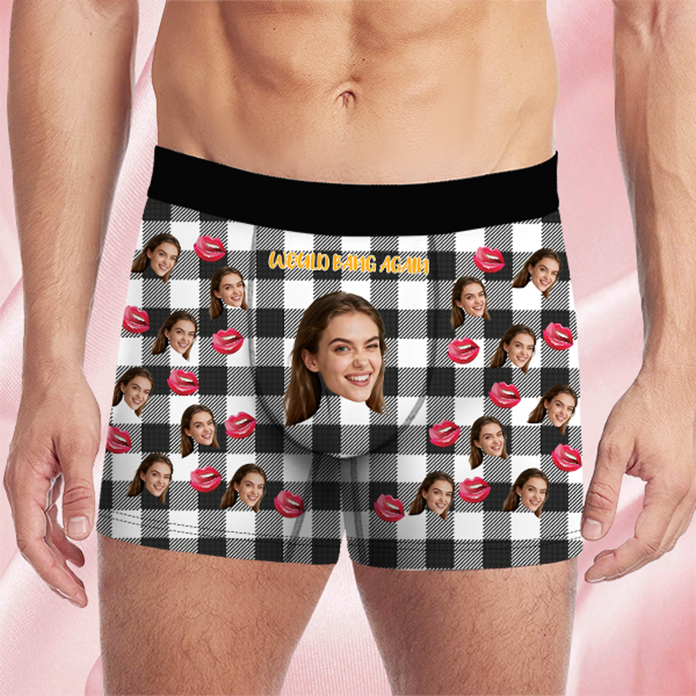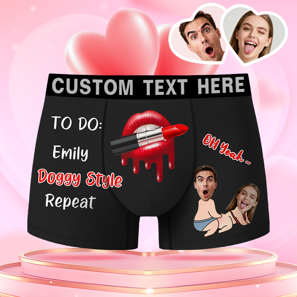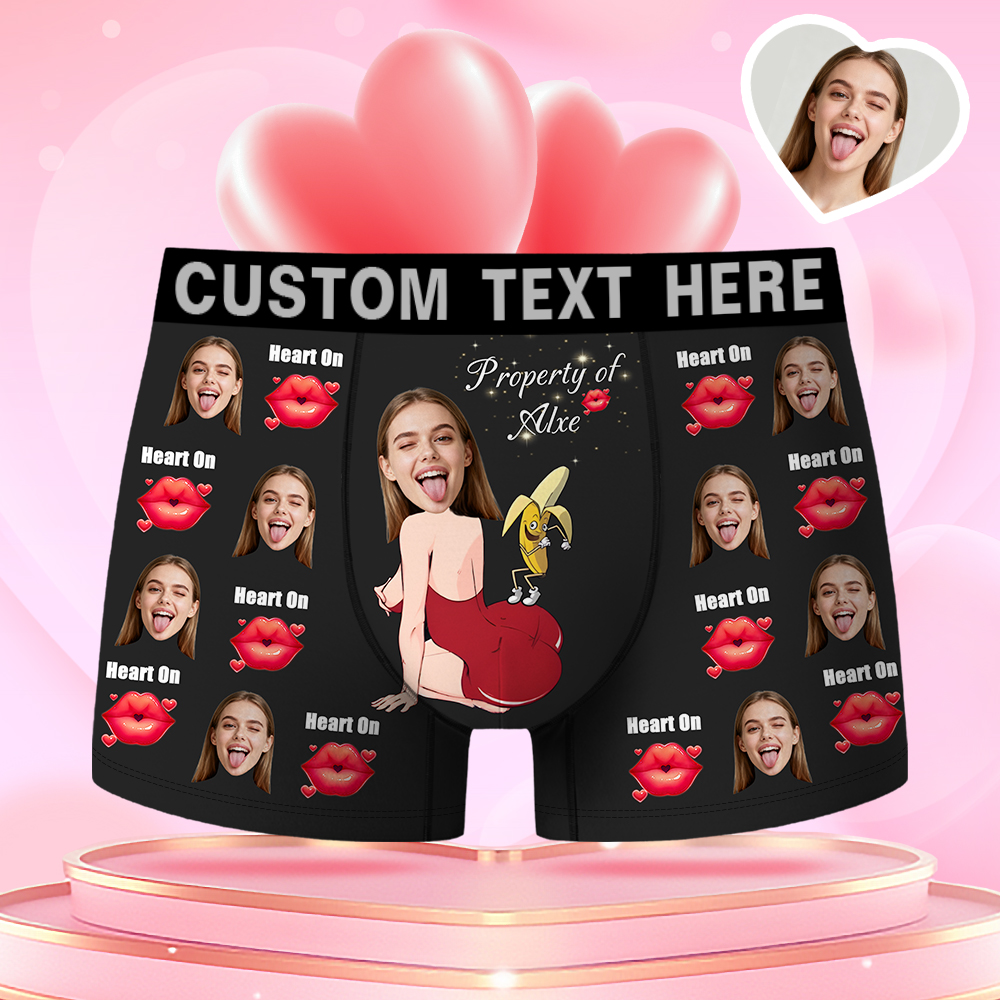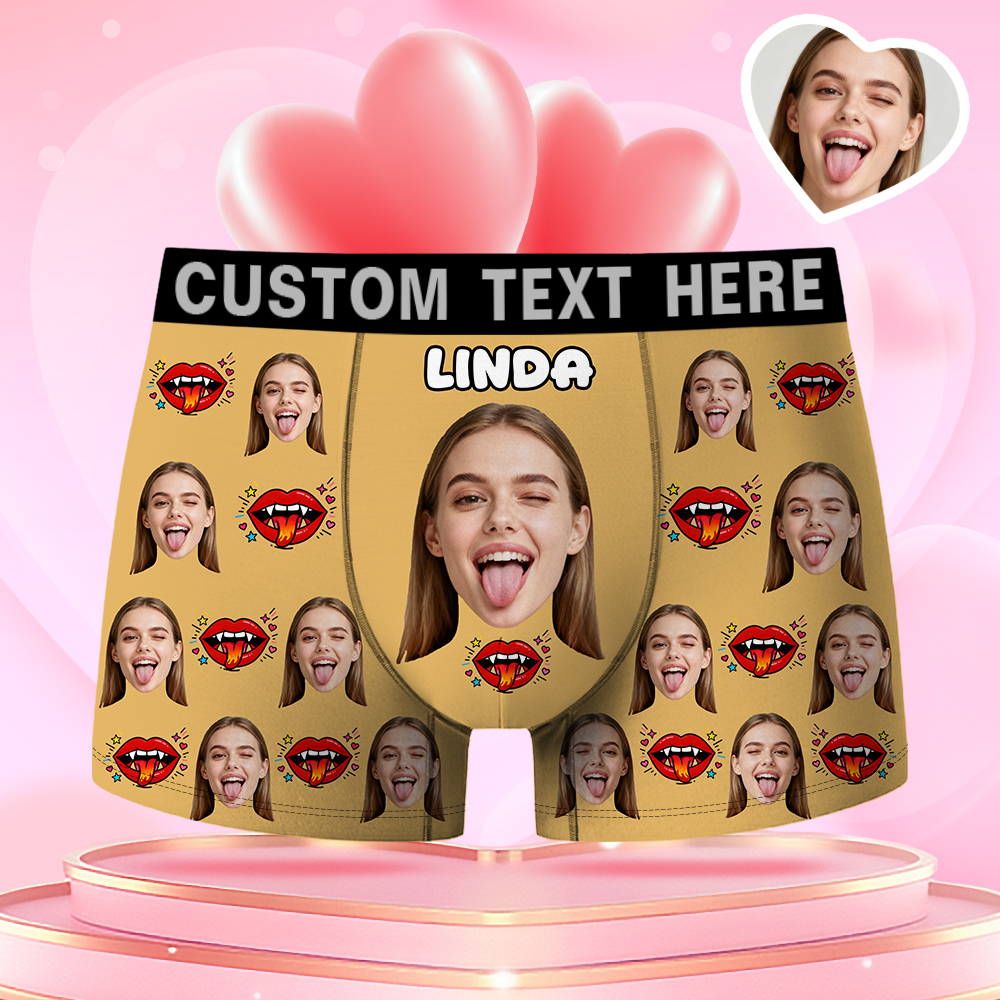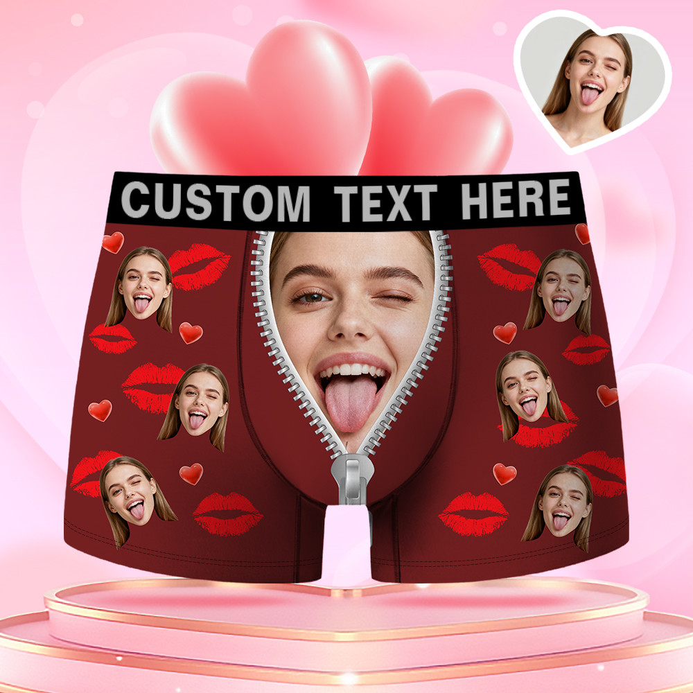 Valentine's Day Gifts Custom Face Men's Boxer Funny Face Gifts For Boyfriend Style Underwear Birthday Gifts For Husband, Waistband Text Boxer Gifts