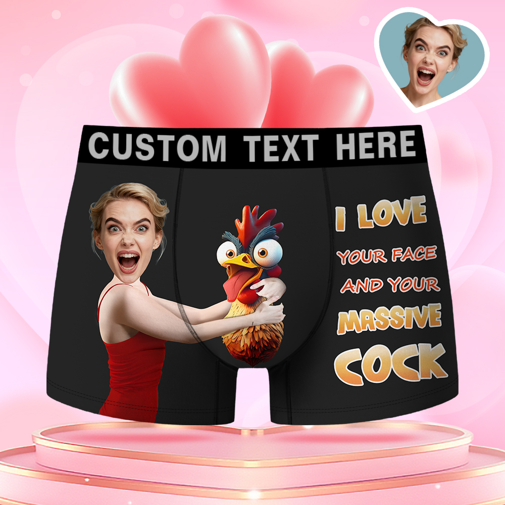 Valentine's Day Gifts Custom Face Men's Boxer Funny Face Gifts For Boyfriend Style Underwear Birthday Gifts For Husband, Waistband Text Boxer Gift