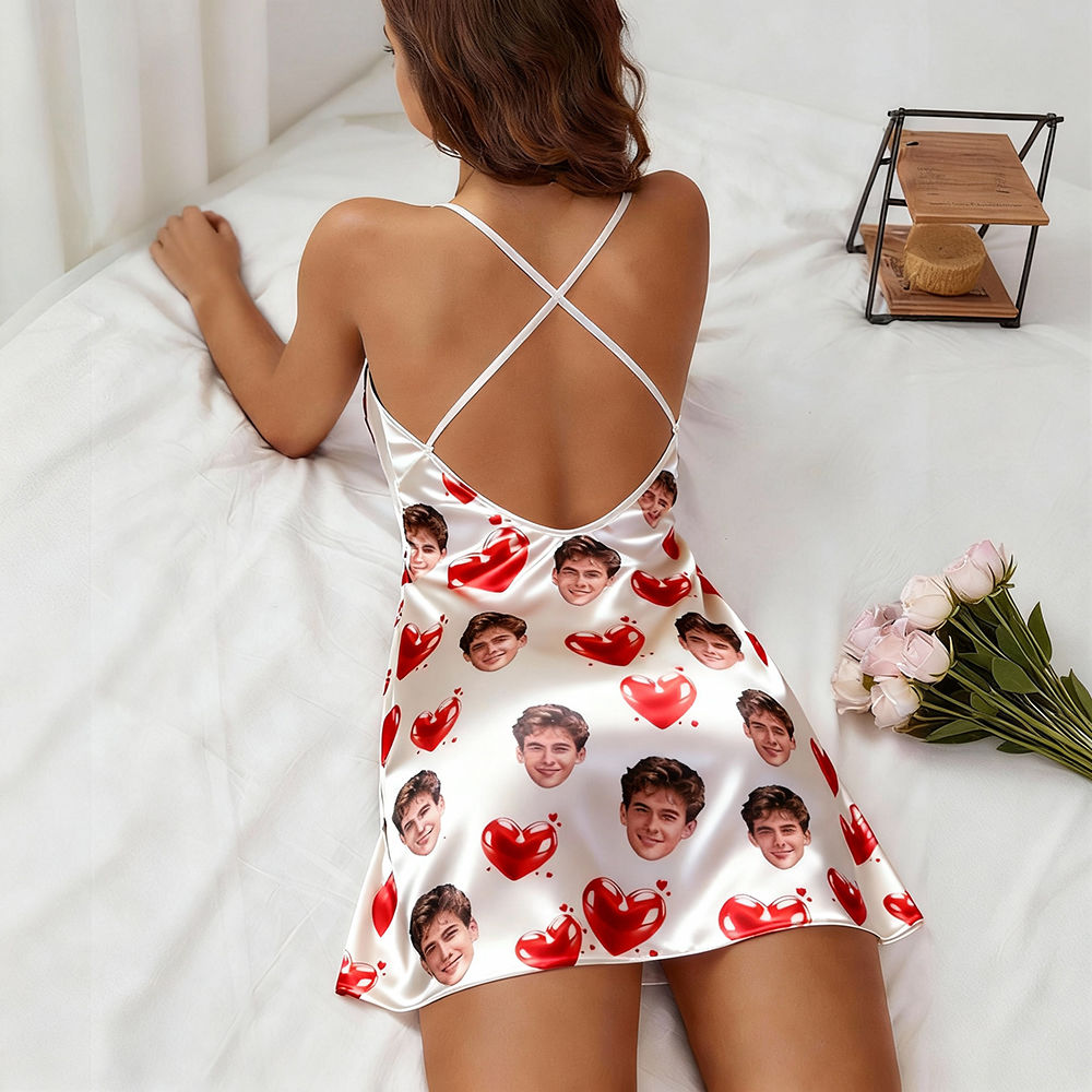 Custom Cami Top Shorts Lace Pajama Set Sleepwear, Face And Name Shorts Pajamas, Custom Photo Pajamas, Valentine's Day Gift, Suitable For Wife And Girlfriend