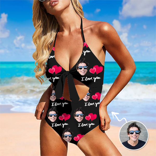 Custom Red Heart Swimsuit Halter Neck One Piece Bathing Swim Suits Outfits,gift For Her