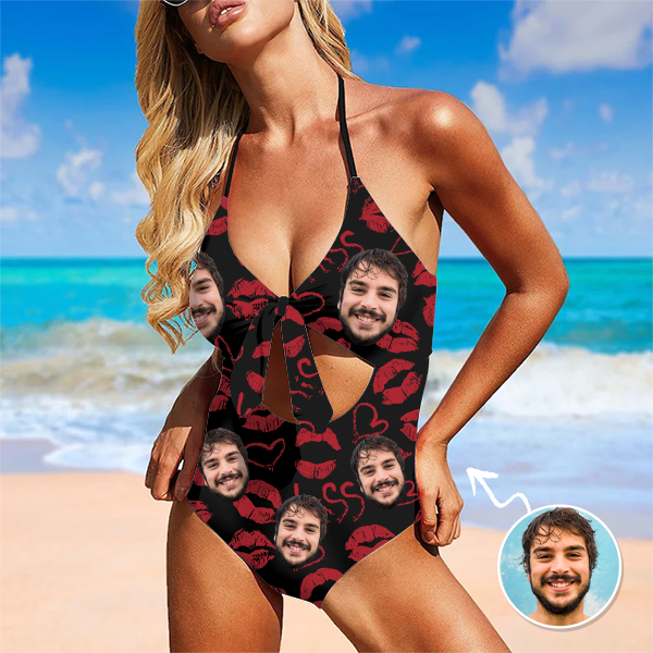 Custom Red Lips Swimsuit Halter Neck One Piece Hot Kiss Bathing Swim Suits Outfits,gift For Her For Wife