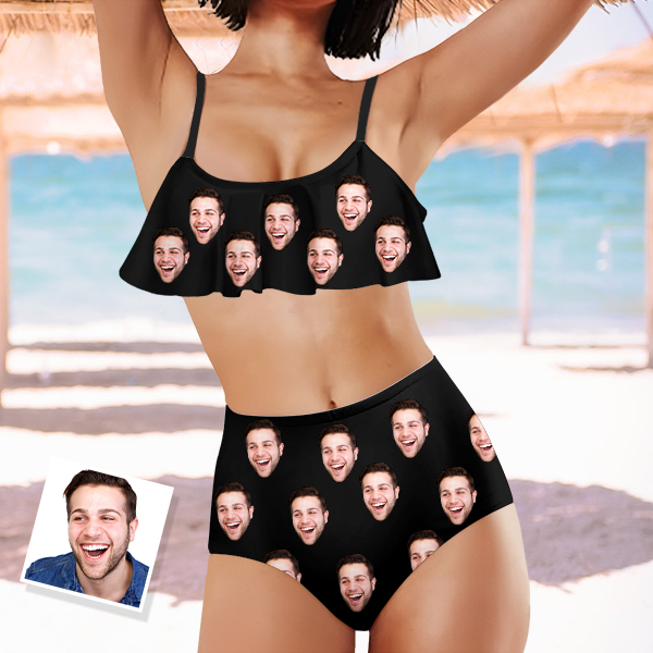 Custom Funny Bathing Bikini Suits Women's Ruffle Summer Suits High Waisted Personalized Two Pieces Bathing Suits Gift For Her