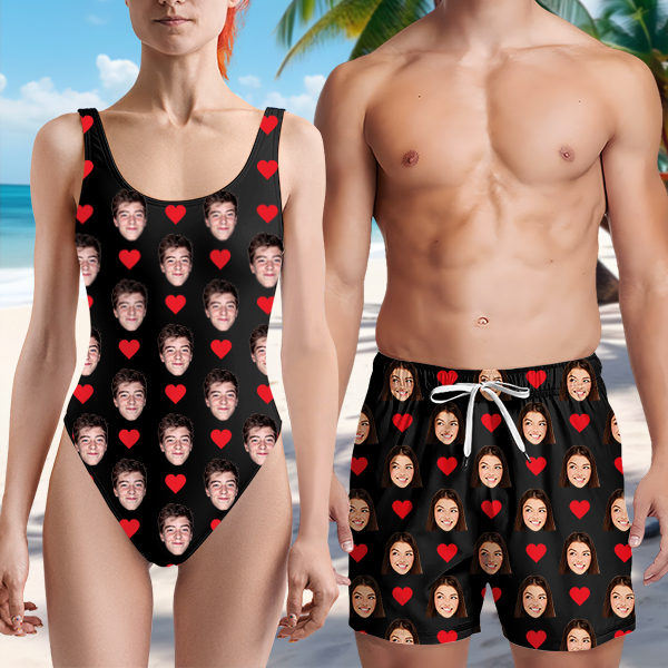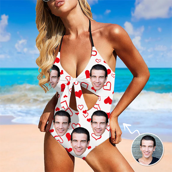 Custom Beach One-piece Bathing Swimsuit Personalized Face Red Heart Photo Swimsuit For Women,gift For Wife