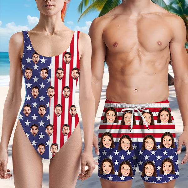 Custom Beach One-piece Bathing Swimsuit Personalized American Flag Photo Swimsuit For Women,gift For Mom
