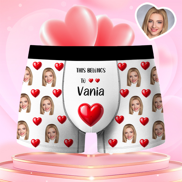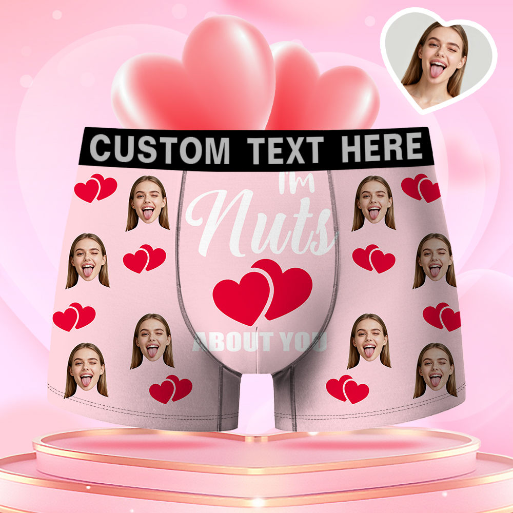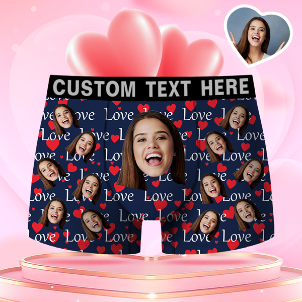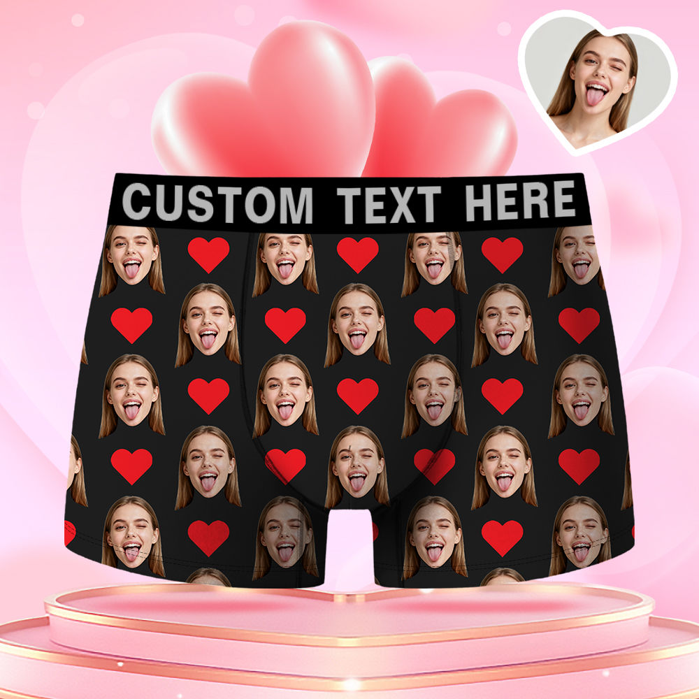 Valentine's Day Gifts Red Hearts Custom Face Men's Boxer Funny Face Gift For Boyfriend Style Underwear Birthday Gifts For Husband, Waistband Text Boxer Gift