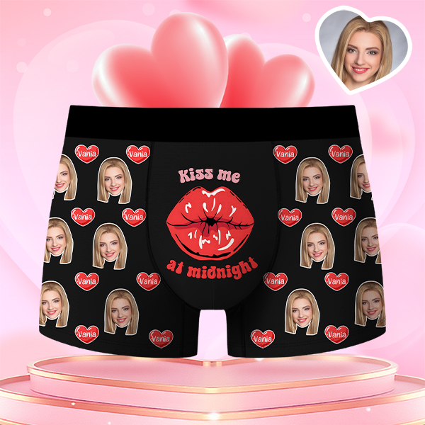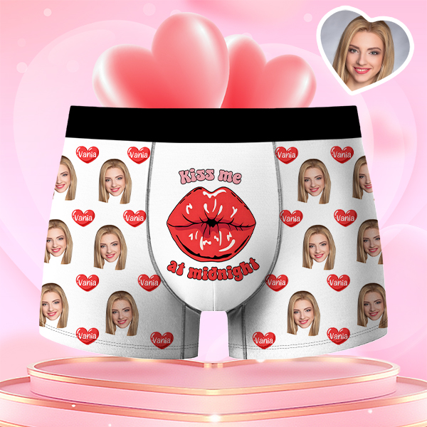 Valentine's Day Gifts Kiss Lips Custom Face Men's Boxer Funny Face Gift For Boyfriend Style Underwear Birthday Gifts For Husband, Waistband Text Boxer Gift