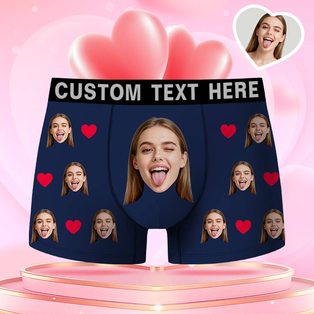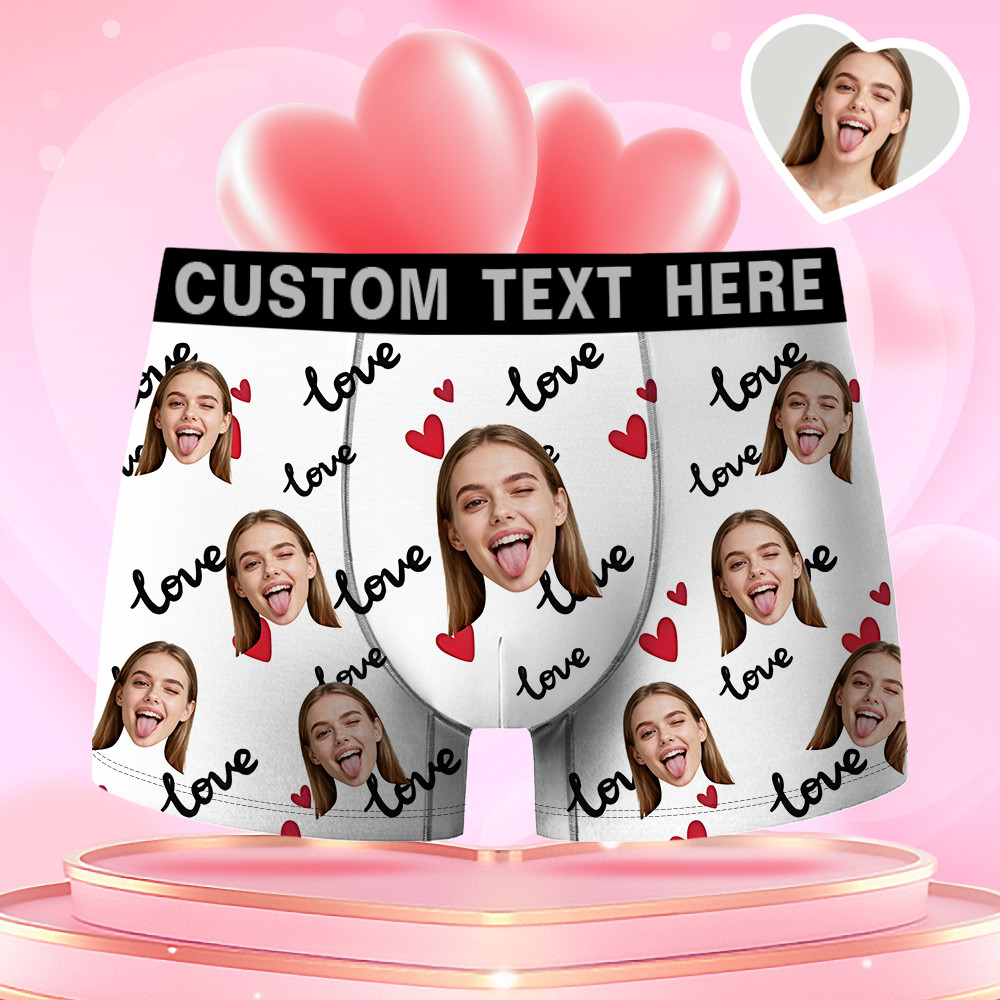 Valentine's Day Gifts Custom Face Men's Boxer Red Heart Funny Face Gift For Boyfriend Style Underwear, Birthday Gifts For Husband, Waistband Text Boxer Gift