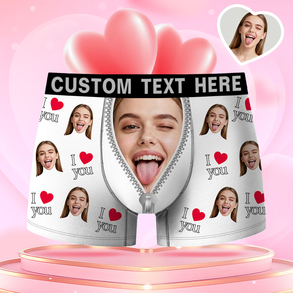Valentine's Day Gifts Custom Face Men's Boxer Funny Face Confession Gift For Boyfriend Style Underwear, Birthday Gifts For Husband, Waistband Text Boxer Gift