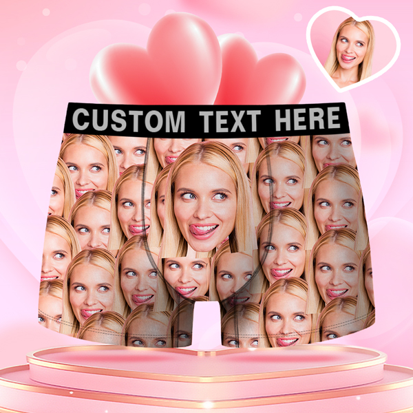 Valentine's Day Gifts Custom Multiple Face Men's Boxer Funny Face Confession Gift For Boyfriend Style Underwear, Birthday Gifts For Husband, Waistband Text Boxer Gift