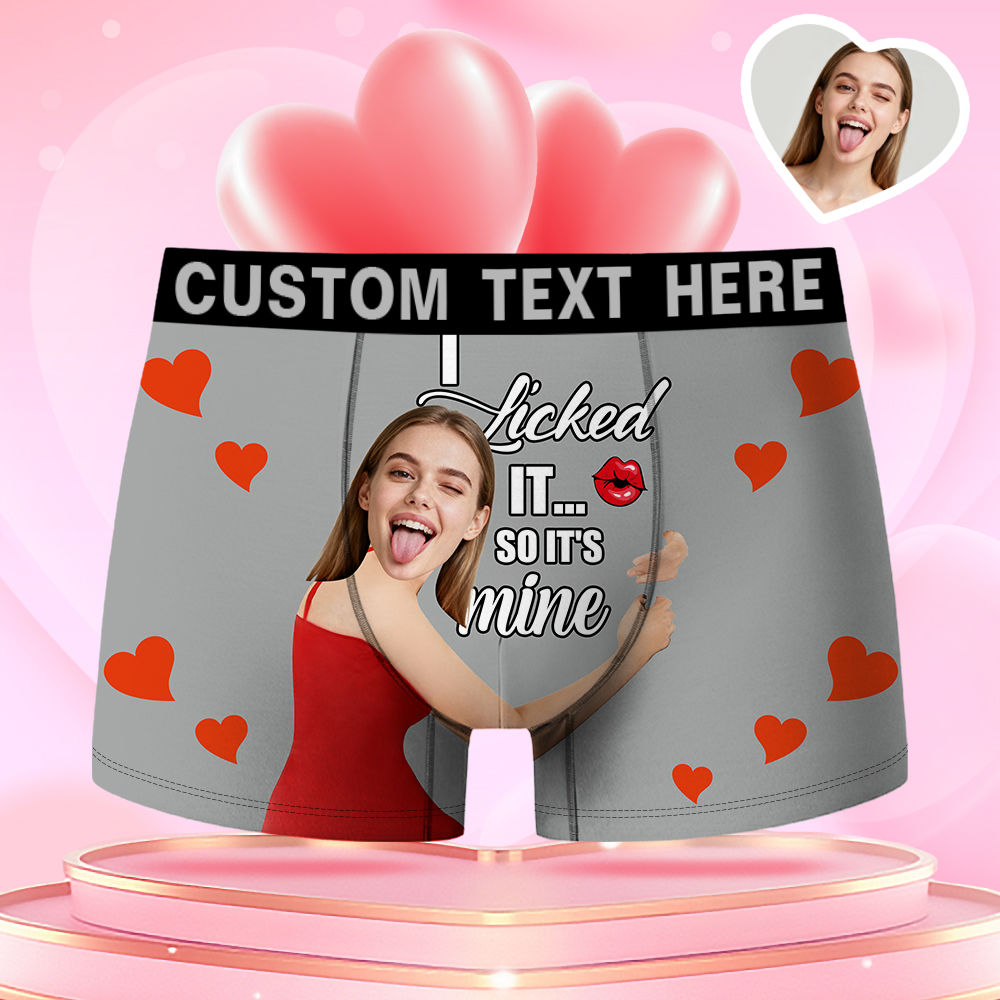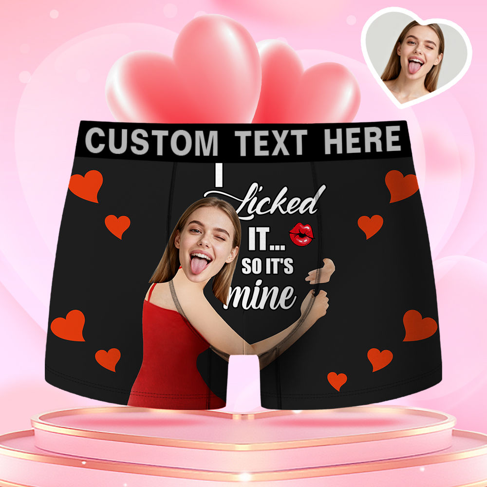 Valentine's Day Gifts Custom Face Men's Boxer Red Heart Funny Face Confession Gift For Boyfriend Style Underwear, Birthday Gifts For Husband, Waistband Text Boxer Gift