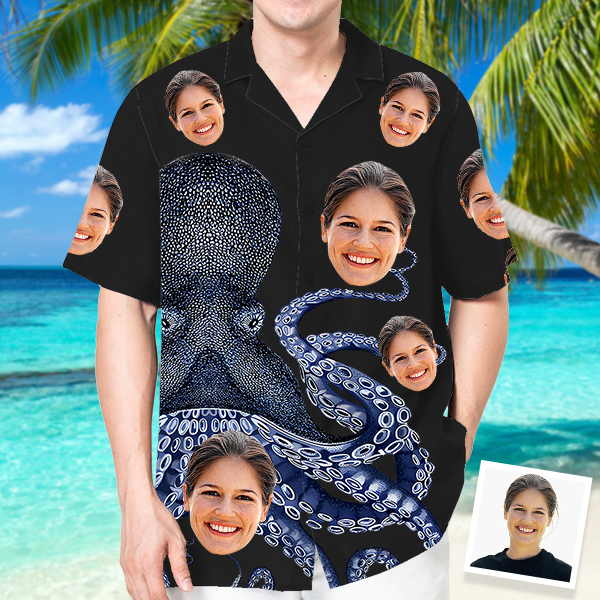 Custom Octopus Hawaiian Shirt With Face Holiday Beach Shirt Japanese Art Beach Shirt Holiday Gift For Men, For Husband