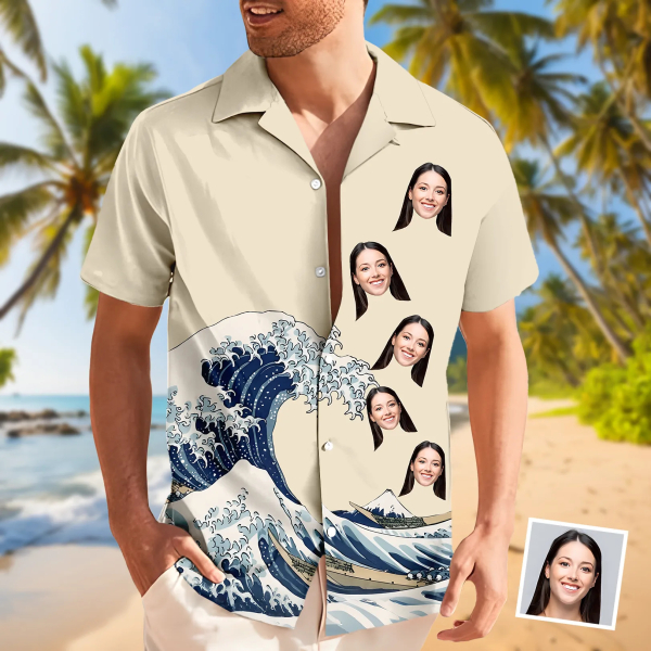 Custom Great Waves Hawaiian Shirt With Face Holiday Beach Shirt Japanese Art Shirt Holiday Gift For Men, For Husband