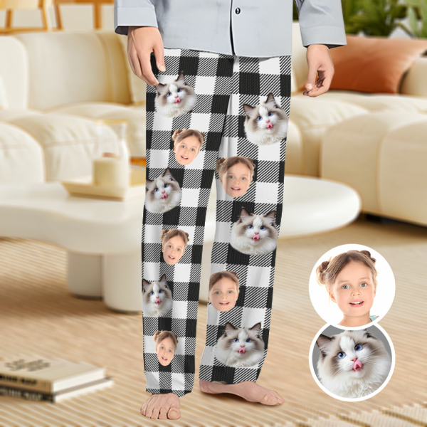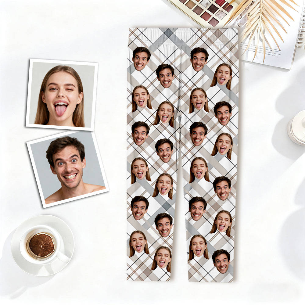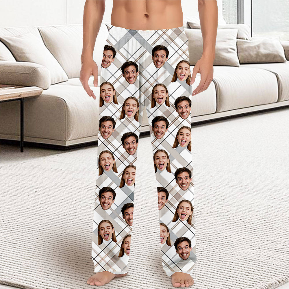Custom Face Pajama Pants Custom White Plaid Christmas Photo Pajamas Gift For Men