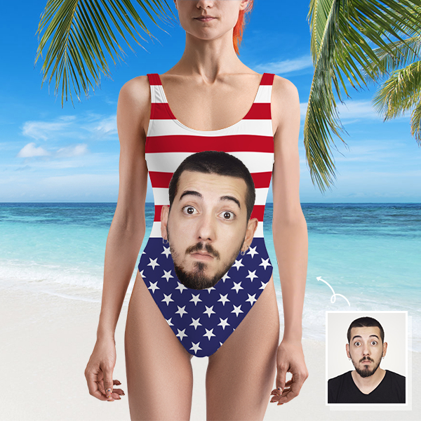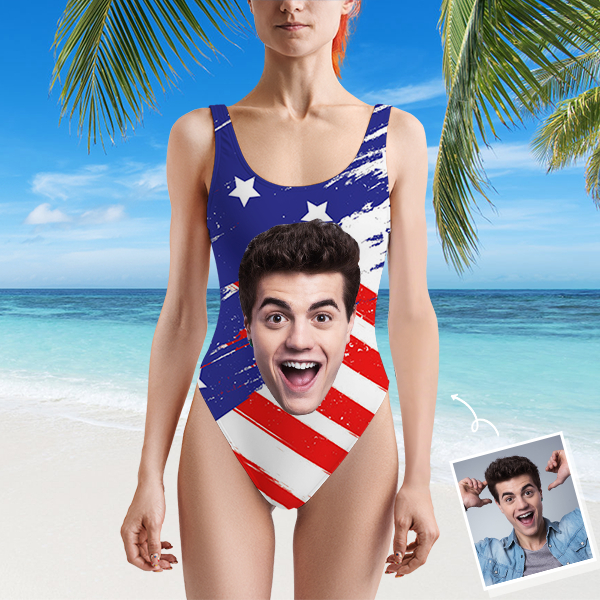 Custom Beach One-piece Bathing Swimsuit Personalized American Flag Photo Swimsuit For Women,gift For Wife