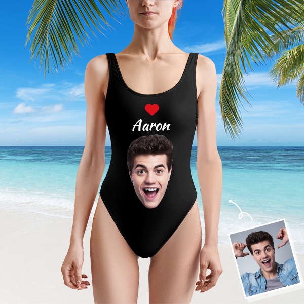 Custom Beach One-piece Bathing Swimsuit Personalized Face Heart Photo Swimsuit For Women,gift For Wife