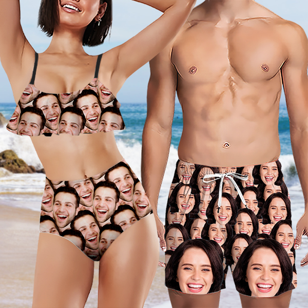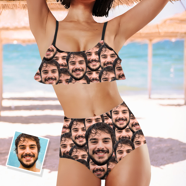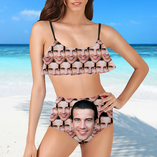 Custom Funny Photo Bathing Bikini Suits Women's Ruffle Summer Suits High Waisted Two Pieces Multi Faces Bathing Suits Gift For Her