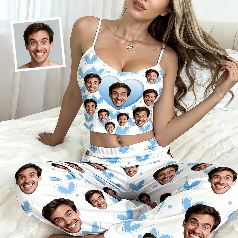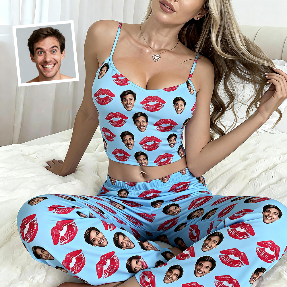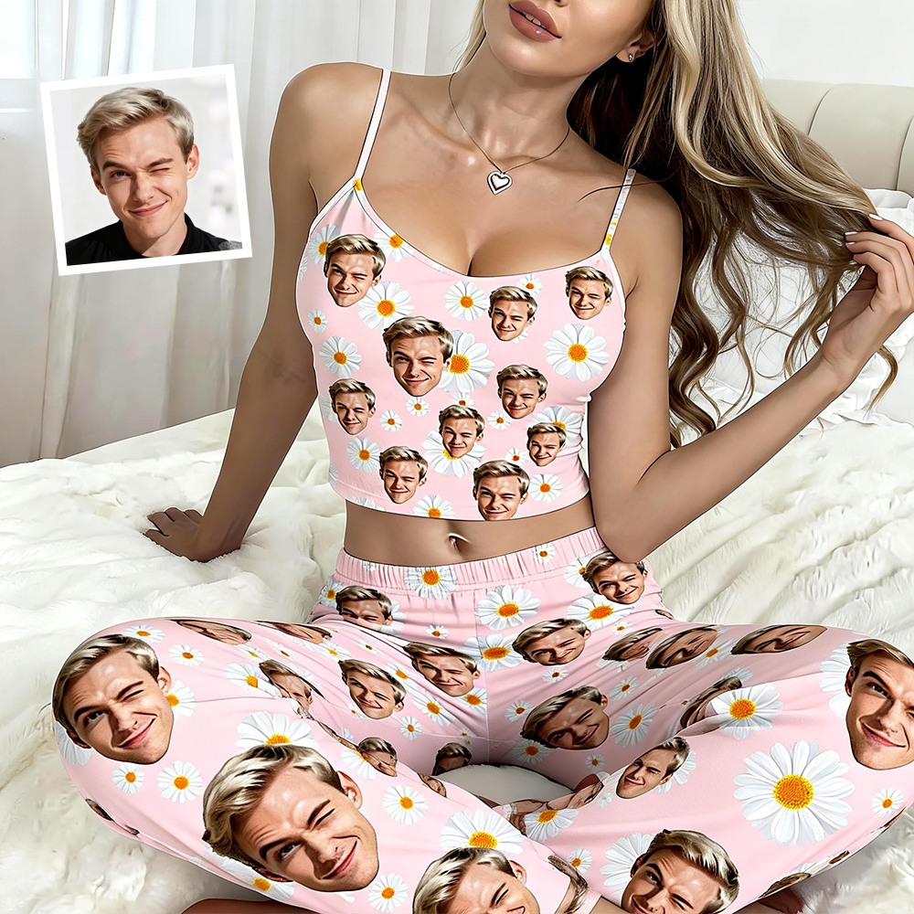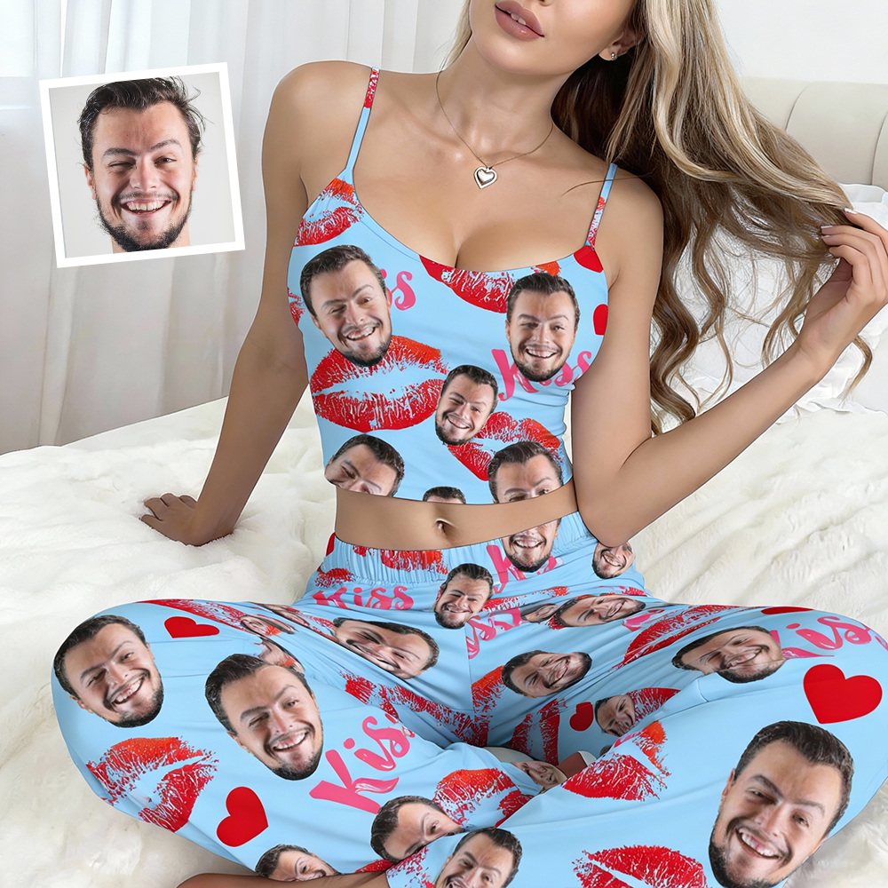 Custom Cami Top Pajamas Set Face & Namelong Pants Pajamas Custom Photo Pajamas Gift For Lovers For Wife For Girlfriend